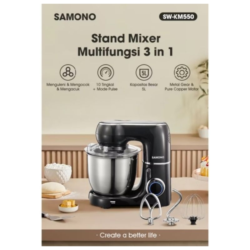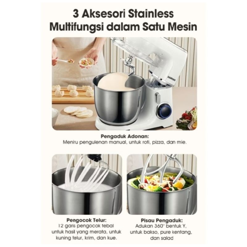 SAMONO STAND MIXER 5 LITER PENGADUK ADONAN 3in1 MIXER W/BOWL SW-KM550