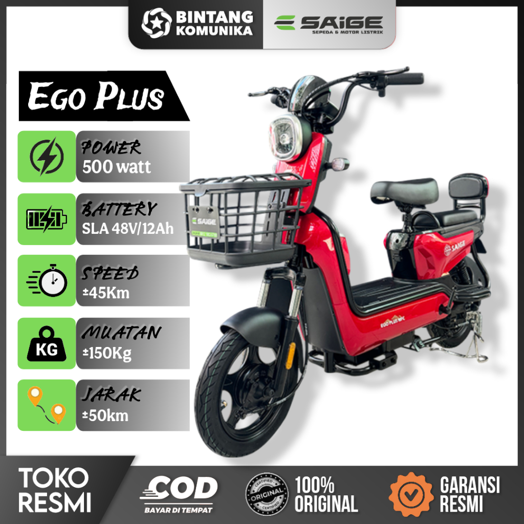 Sepeda Listrik Saige Ego Plus NFC 500Watt, 48v/12Ah, Garansi Resmi, Alarm