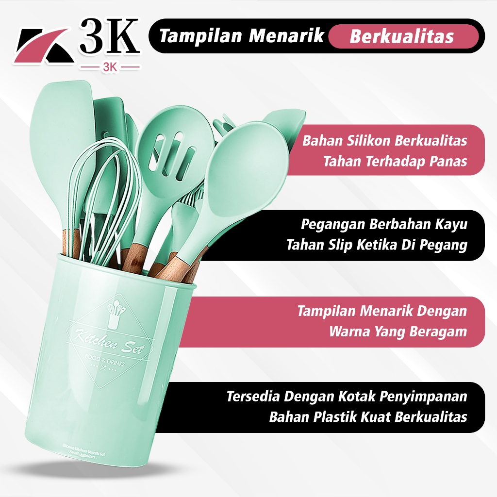 Spatula Silicone Set Tahan Panas 12in1Set Peralatan Masak Silikon Spatula Set