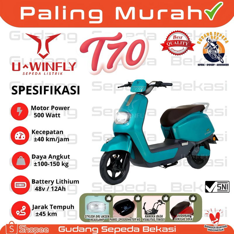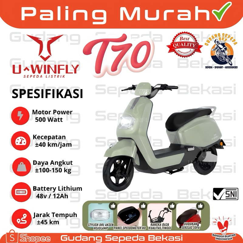 [Star] SEPEDA LISTRIK UWINFLY T60 / / T65 LITHIUM /T70 Lithium New 500 Watt GARANSI RESMI PABRIK