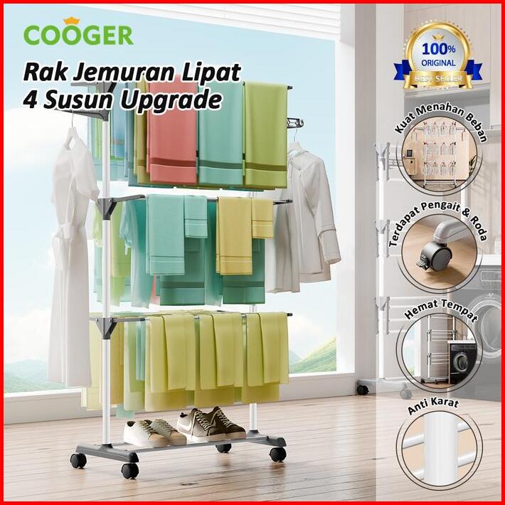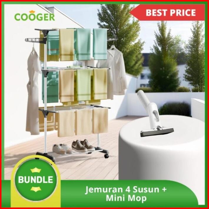 Cooger Bundle Jemuran Baju Stainless Steel 4 Susun Gratis Mini Mop