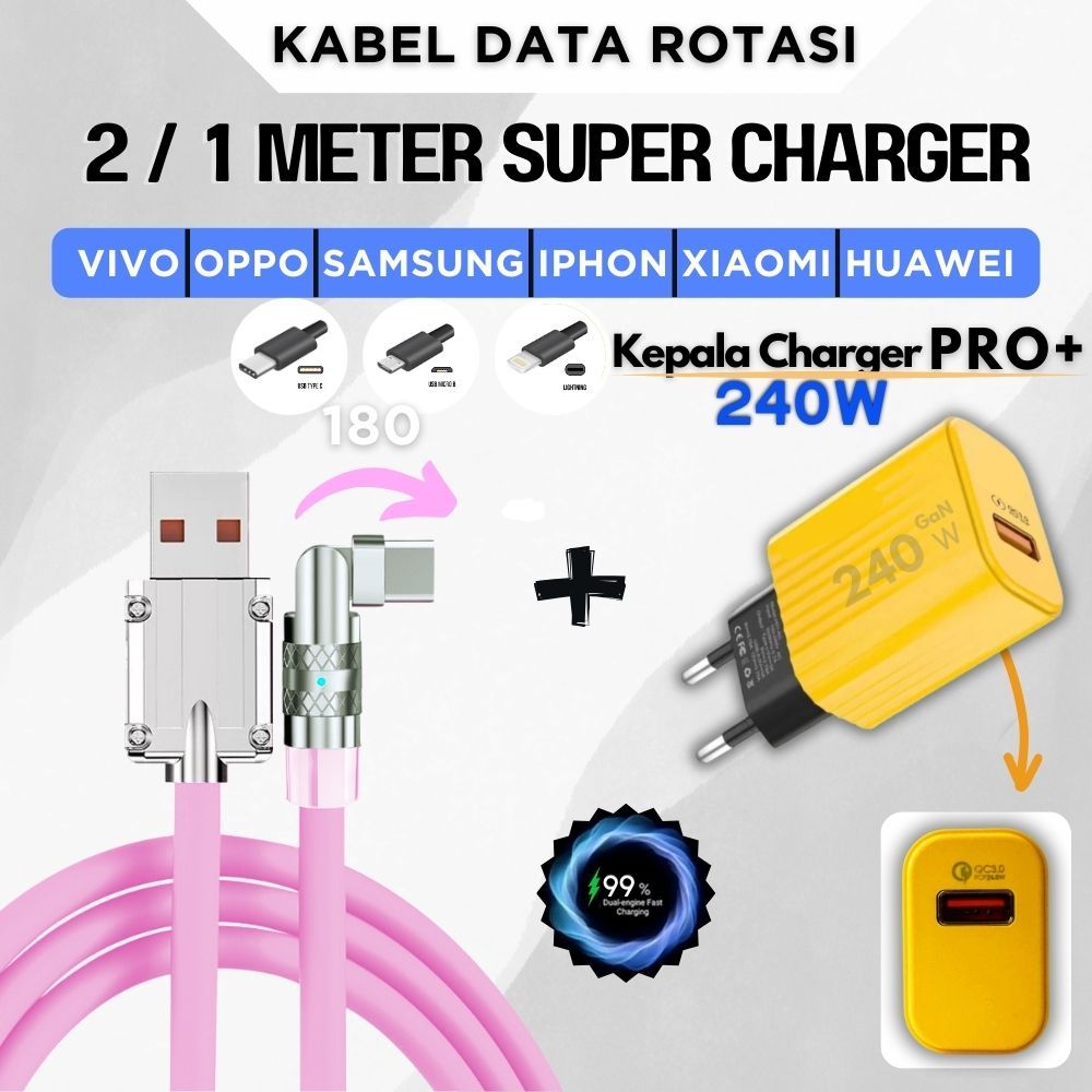 【Dapat Charger Cepat】240W 6A Kabel Data Silikon Fast Charging Rotasi 180 Derajat Fast kepala Charger Port Putar dengan L