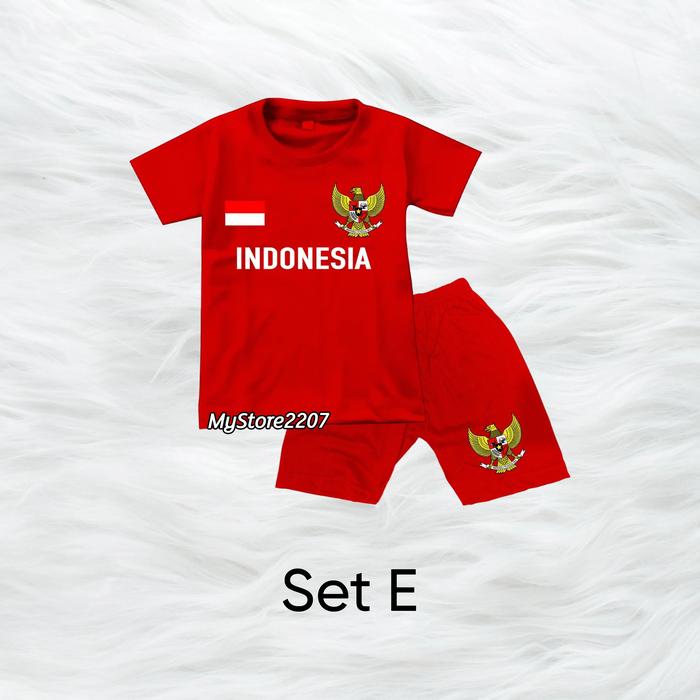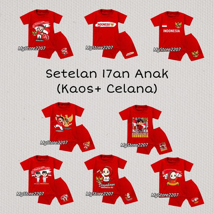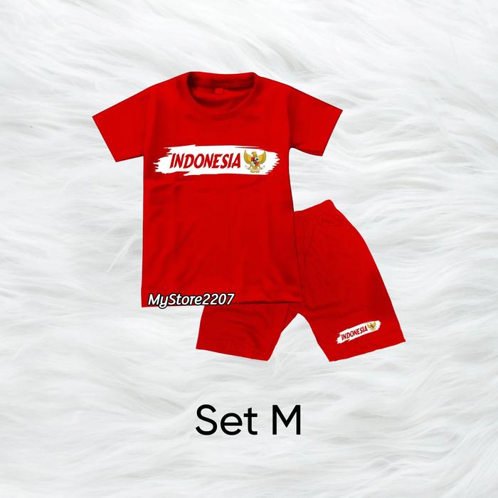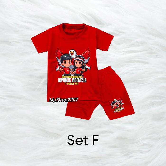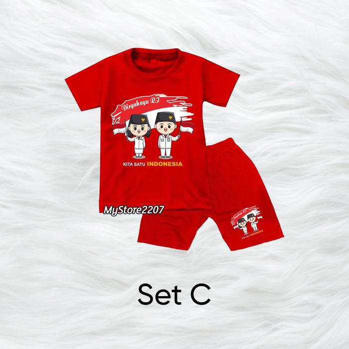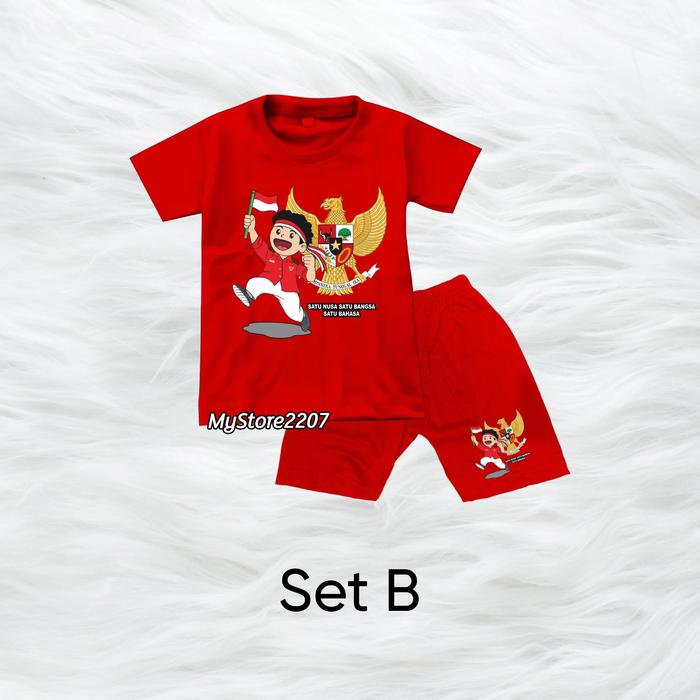 SETELAN KAOS + CELANA ANAK DIRGAHAYU KEMERDEKAAN 17AN OUTFIT MERAH PUTIH ANAK LAKI & PEREMPUAN - SET A, S (1-2 TAHUN)