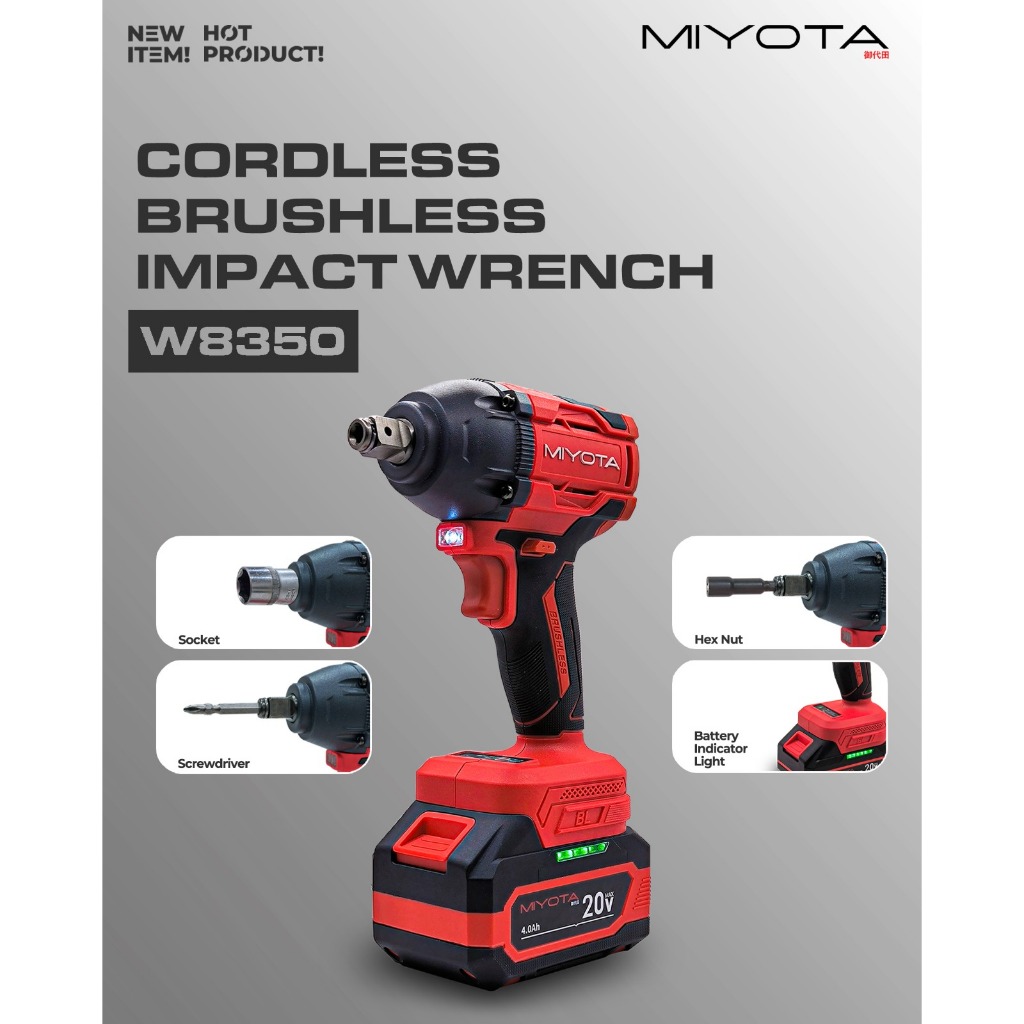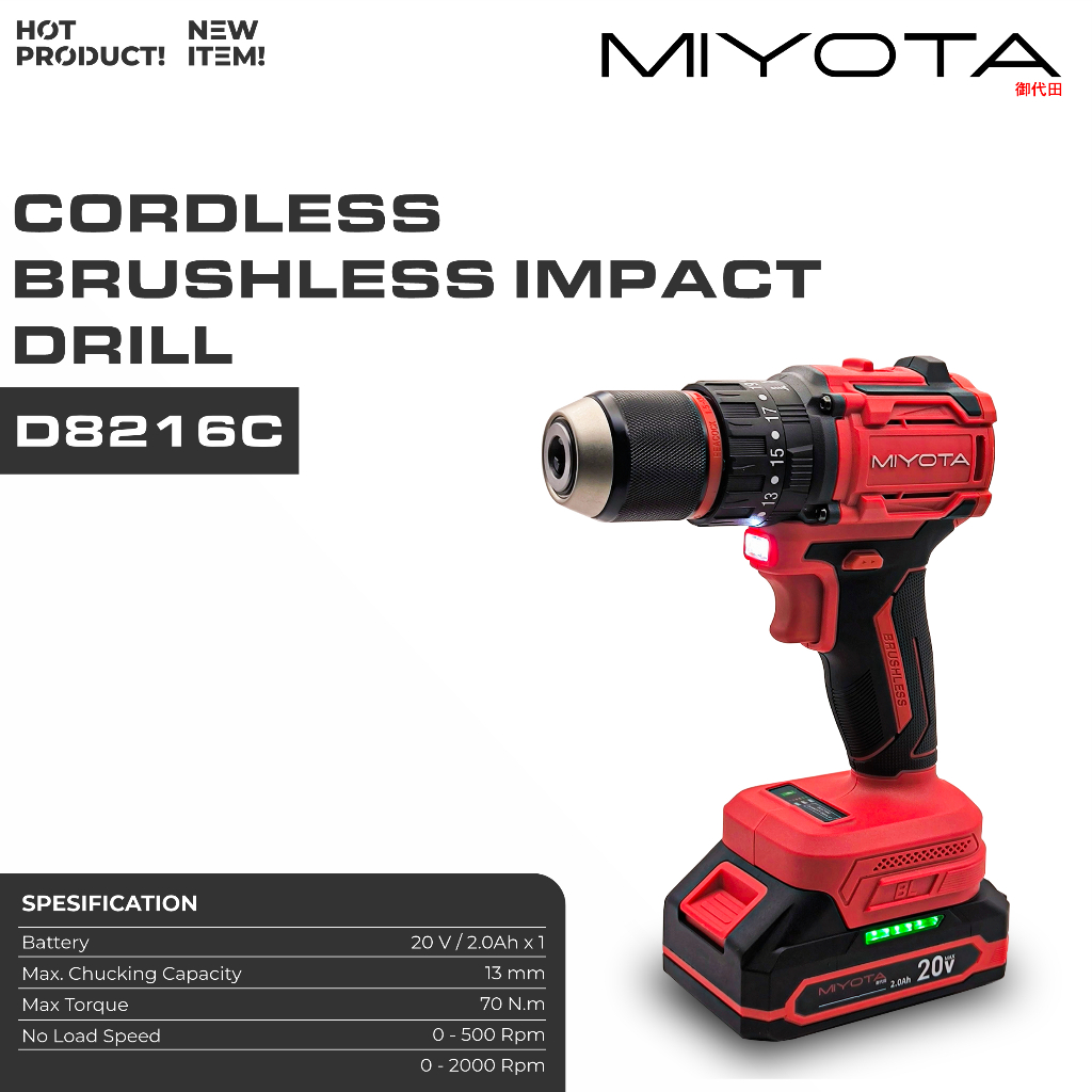 Mesin Impact Drill Bor MIYOTA Cordless Brushless Impact Drill Bor Beton 13MM 60Nm 20V-D8216C
