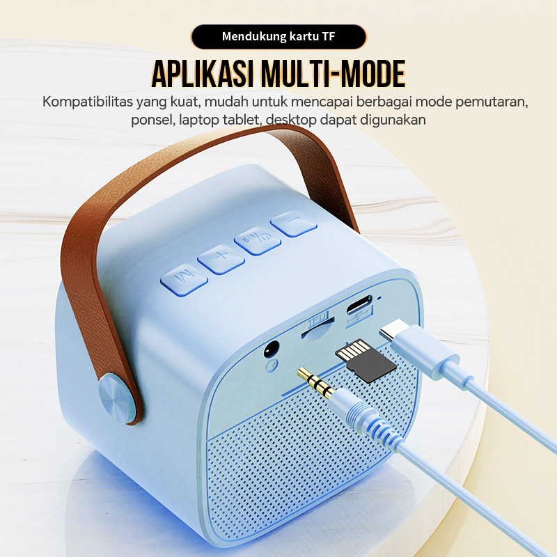 [Mall] Speaker mini bluetooth 2 mic 1 karaoke Bluetooth 5.3 Set Mini Full Bass Portable Wireless (Dapat terhubung ke kep