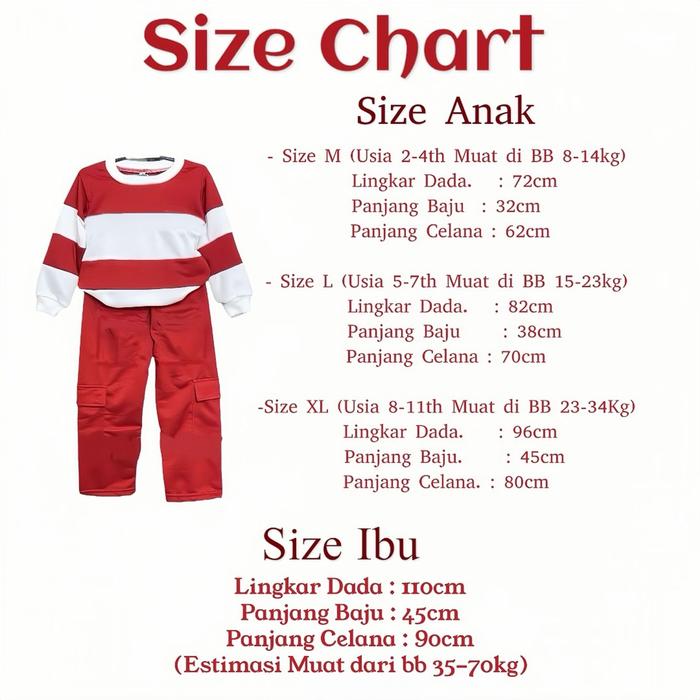 SETELAN MERAH PUTIH COUPLE IBU DAN ANAK SPESIAL KEMERDEKAAN SWEATER CROP DAN CELANA CARGO // SETELAN MERAH PUTIH DIRGAHA
