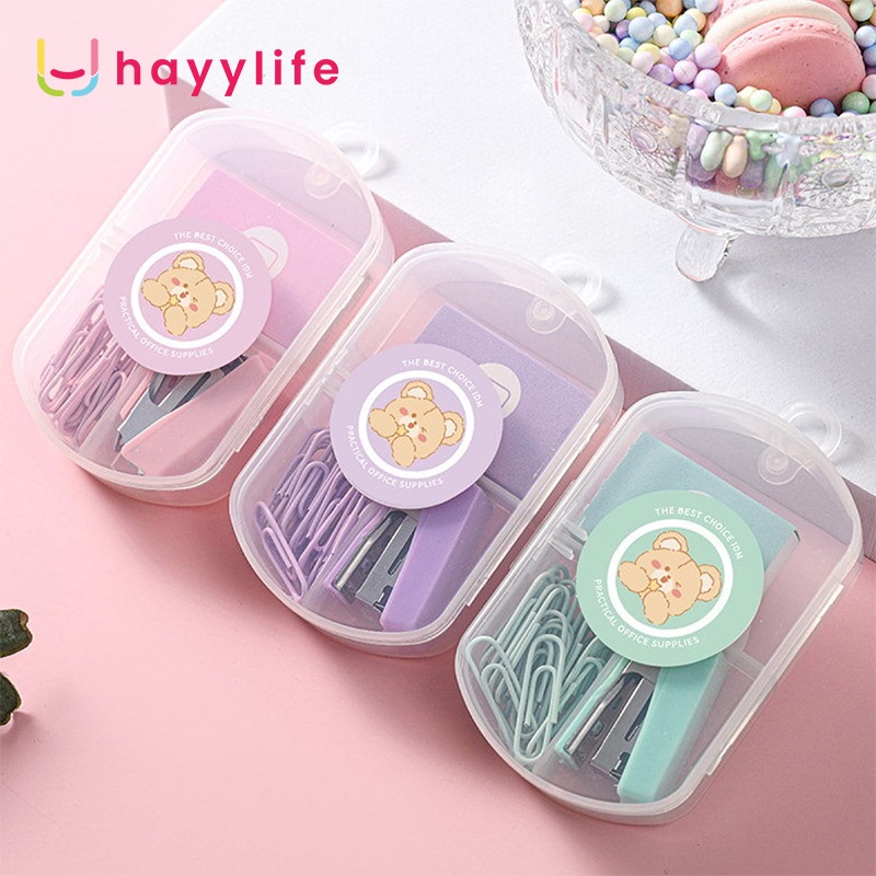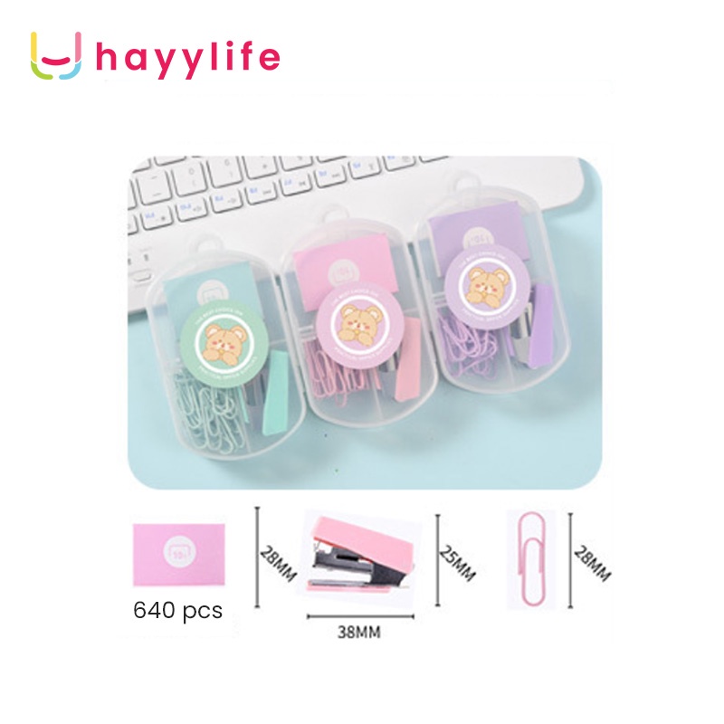 Mini Set Stapler Set 3 in 1 Staples ,Cute Stapler + Klip Kertas Sekolah/Kantor /klip kertas/peralatan sekolah/