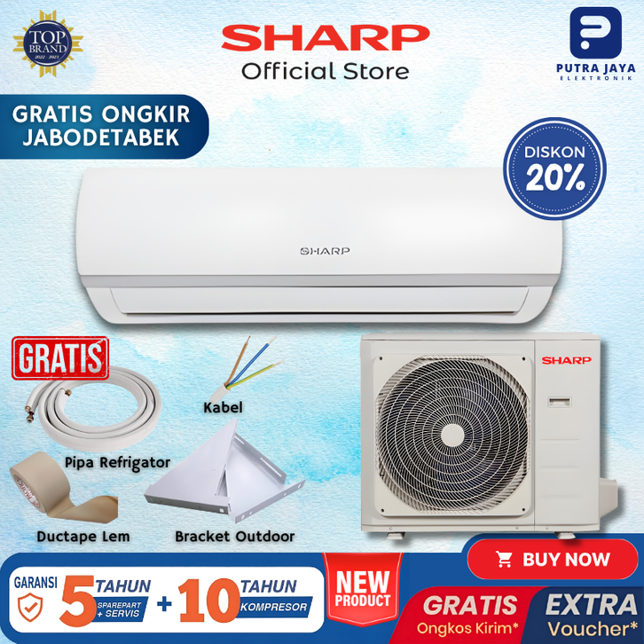 [Star] Sharp Air Conditioner AC 0.5 1 2 PK Low Wat Murah Tanpa DP Setengah 2Pk 1Pk Inverter LG Midea Aqua Official Store