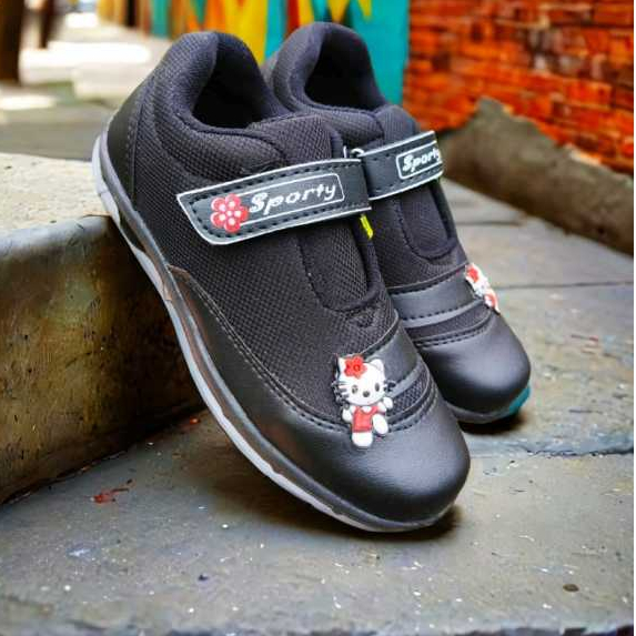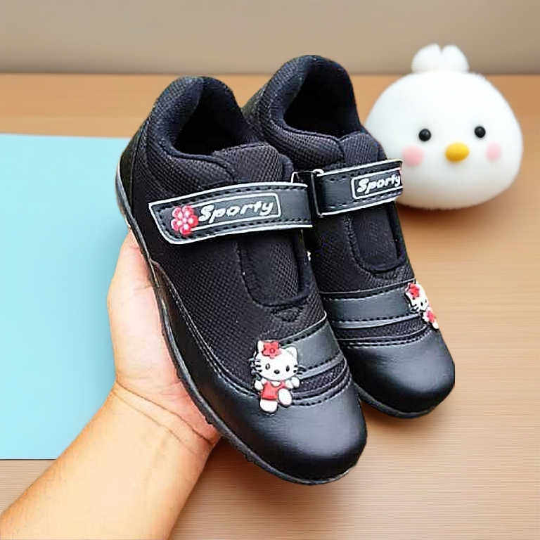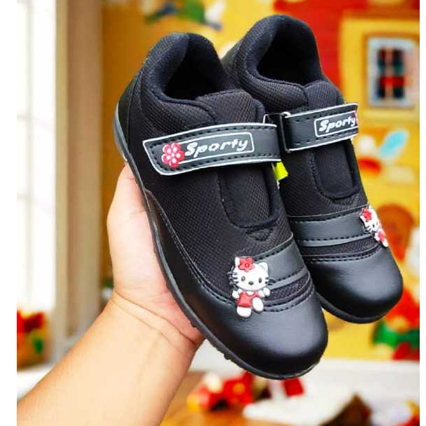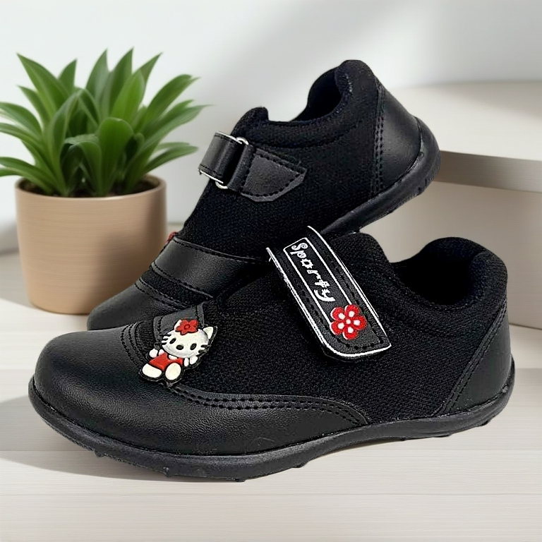 Sepatu Anak Flat Shoes Anak Perempuan Sekolah SD dan TK/Spotty Hello Kitty Hitam 26-35