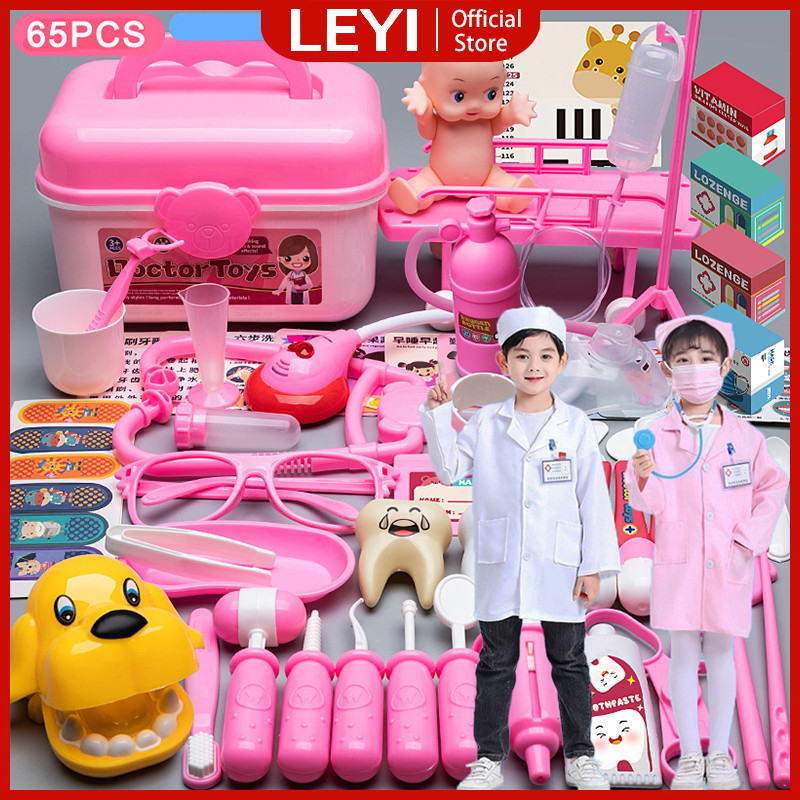 LEYI 65PCS Mainan Dokter Dokteran Anak Lengkap Perempuan Edukasi Medical Center Docter Box Set