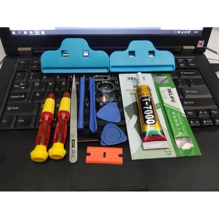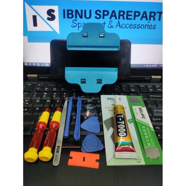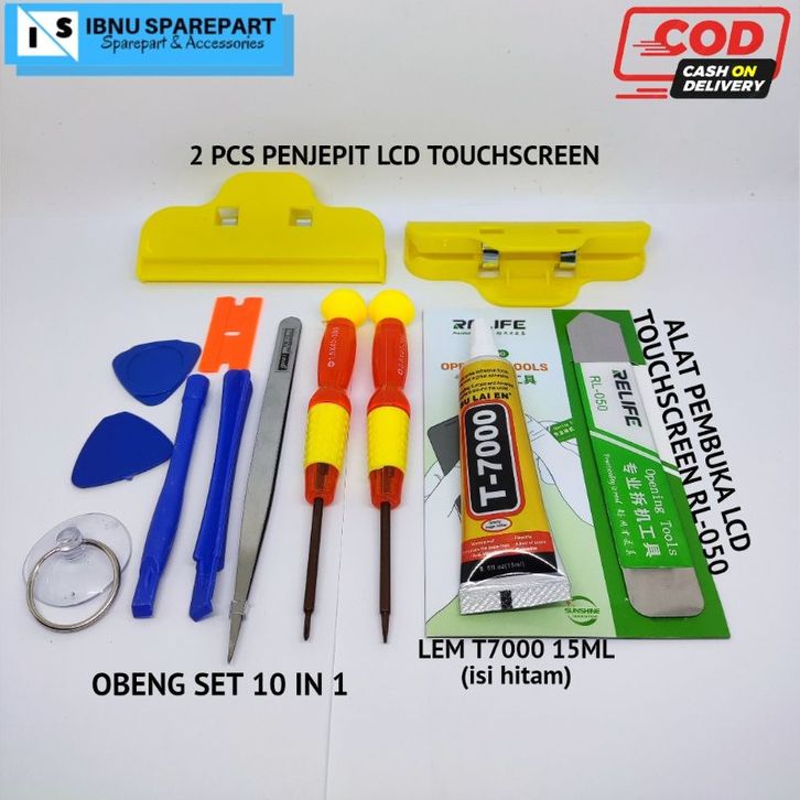 (KOMPLIT) OBENG SET HP 10 IN 1 + PENJEPIT LCD + LEM T7000 15ML + PEMBUKA LCD TOUCHSCREEN RL-050 OPENING TOOLS SERVIS HP