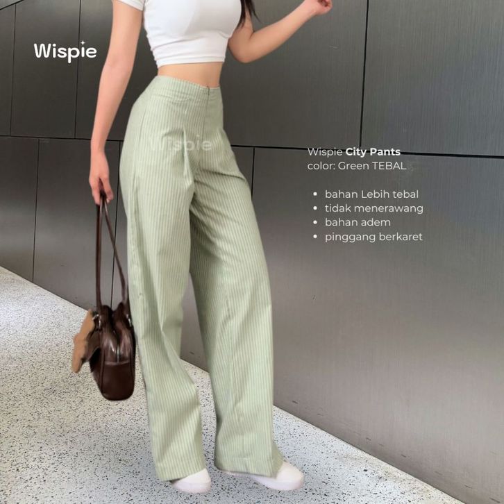 Celana Panjang Wispie Wanita Kantor Kuliah Motif Garis Kulot Pinstripe City Pants