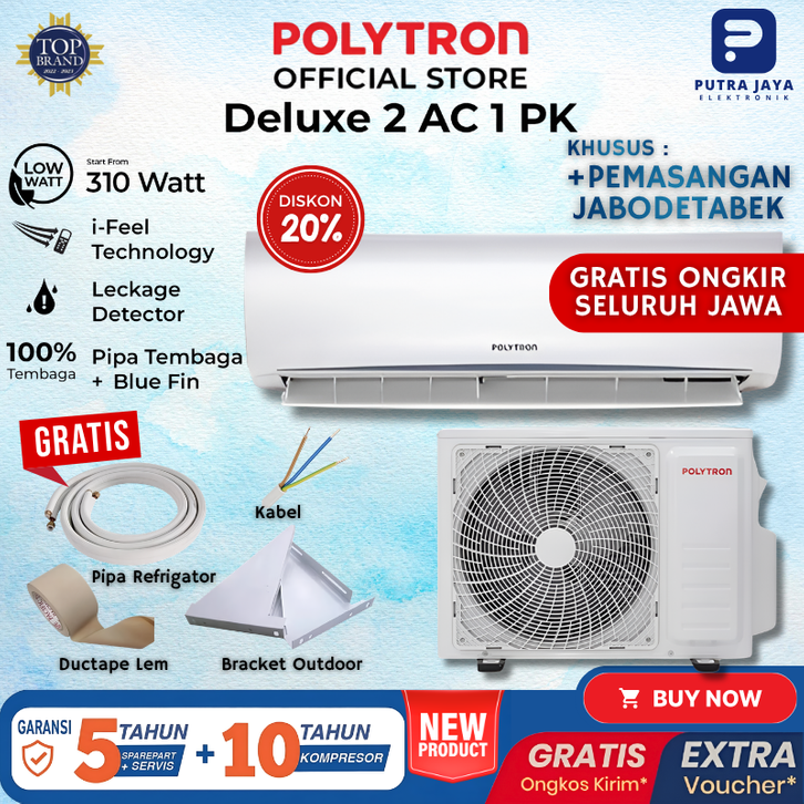 [Star] AC Polytron Air Conditioner 0.5 1 2 PK Low Wat Murah Tanpa DP Setengah 2Pk 1Pk Inverter Midea Aqua Official Store