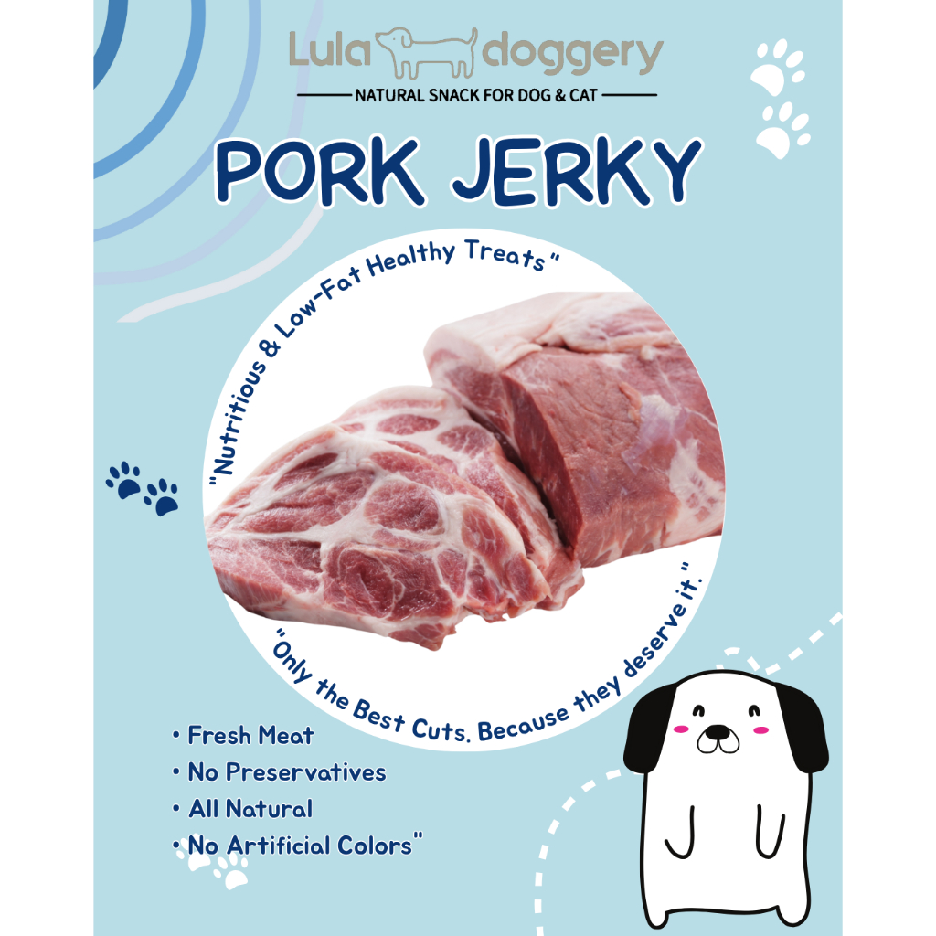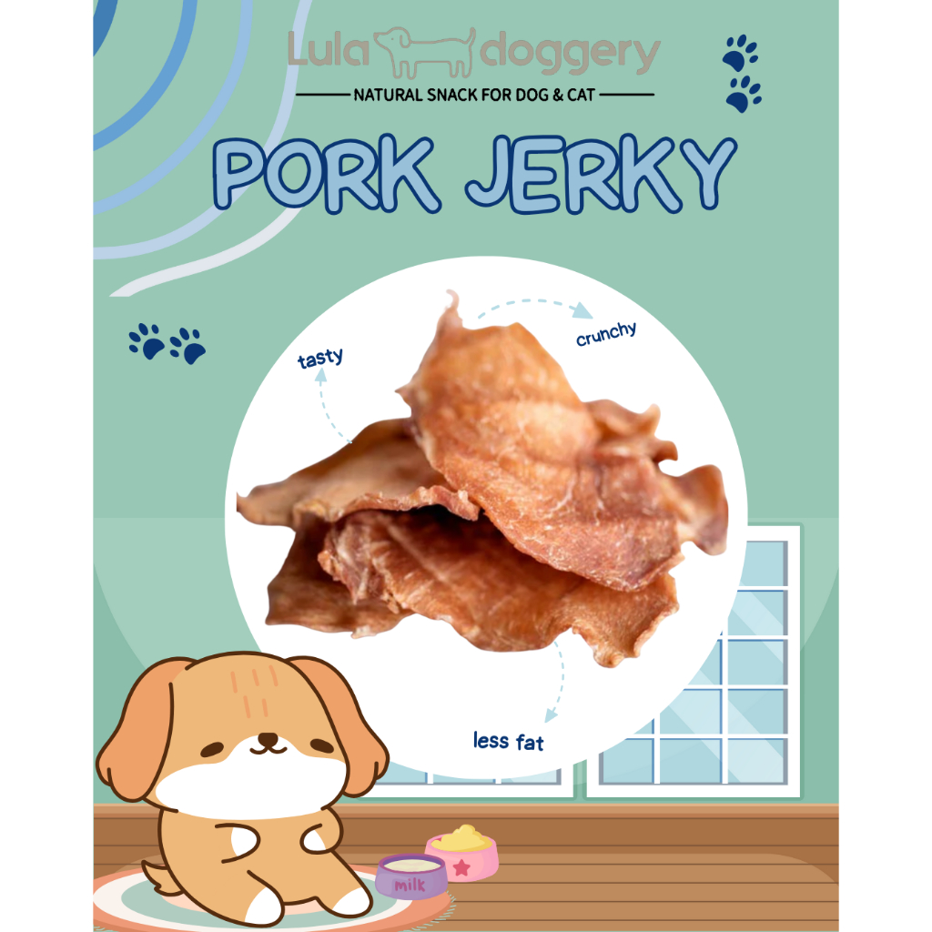 PORK JERKY Snack Anjing Kucing Natural Babi Lula Doggery