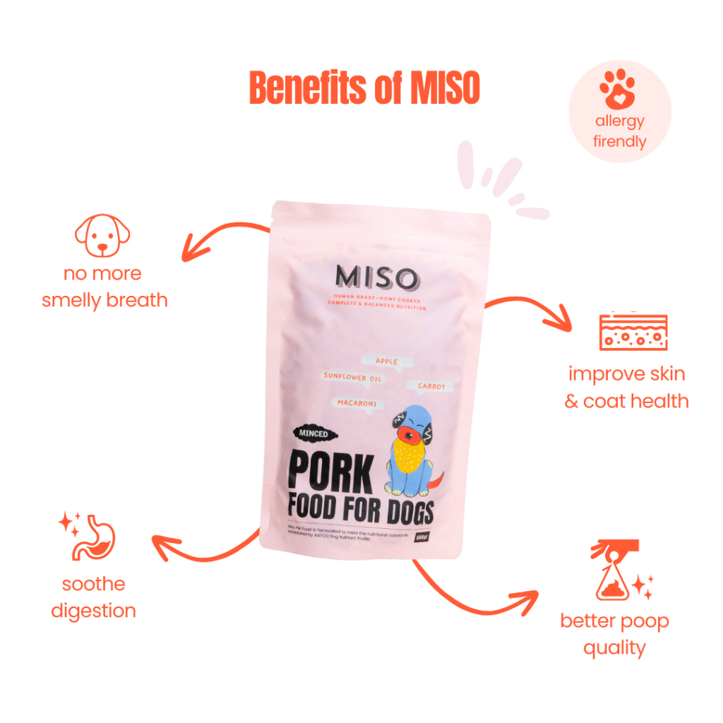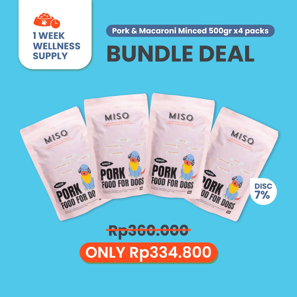 MISO Cooked Dog Food - Pork & Macaroni 2 kg Bundling 4 Packs | Makanan Basah Wet Anjing Dewasa Babi