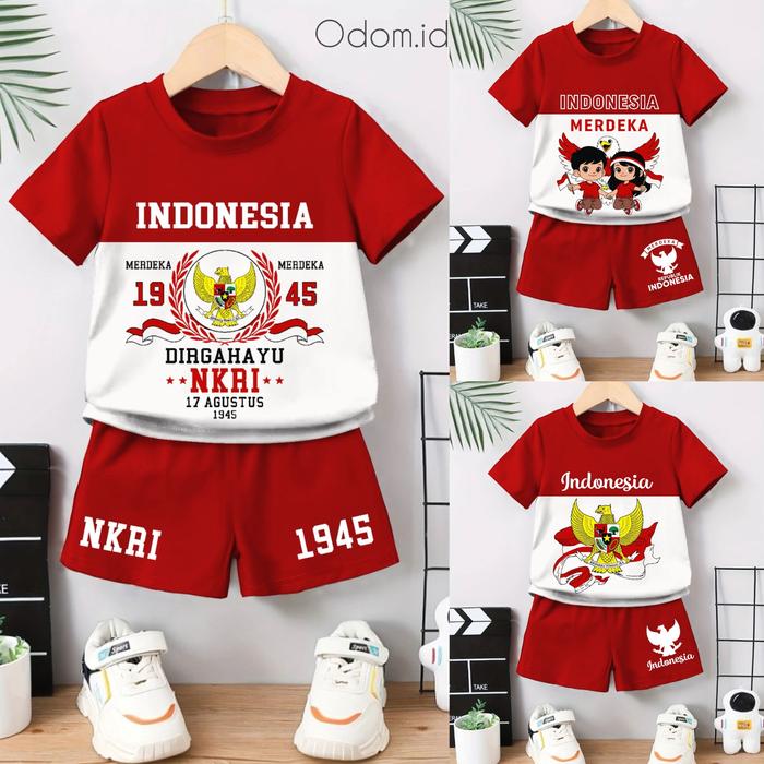 ODOM SETELAN BAJU ANAK KEMERDEKAAN/SETELAN BAJU ANAK COWOK/BAJU ANAK LAKI LAKI/SETELAN BAYI - OB.KOM.INDONESIA 02/MERAH,