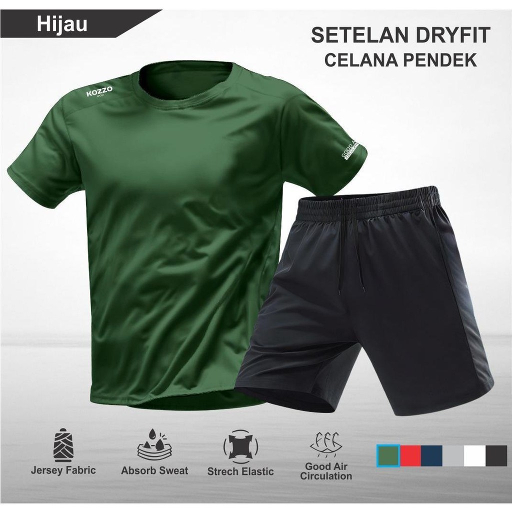 SETELAN RUNNING KOZZO – BAJU OLAHRAGA PRIA KAOS DRY FIT DAN CELANA PENDEK SPORT TANPA SAKU