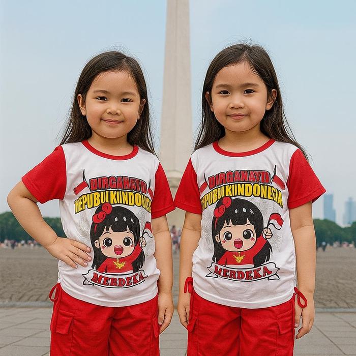 HP - BAJU ANAK SETELAN MERAH PUTIH KEMERDEKAAN 17 AGUSTUS / OUTFIT MERDEKA DIRGAHAYU PEREMPUAN CELANA CARGO BAJU SERUT U