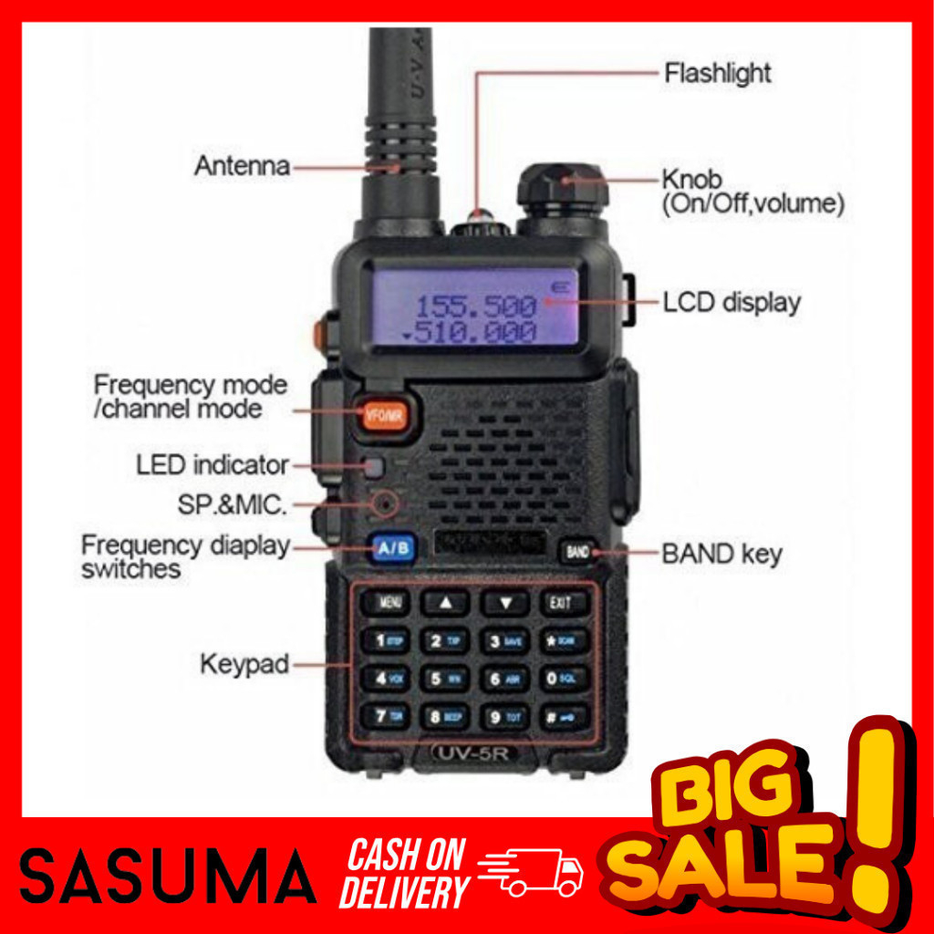 SASUMA HT Walkie Talkie UV5R 8W 2800 MAH 8 Watt VHF UHF Dualband Dual band