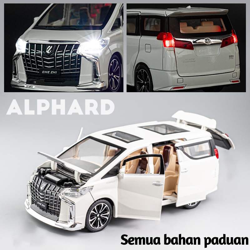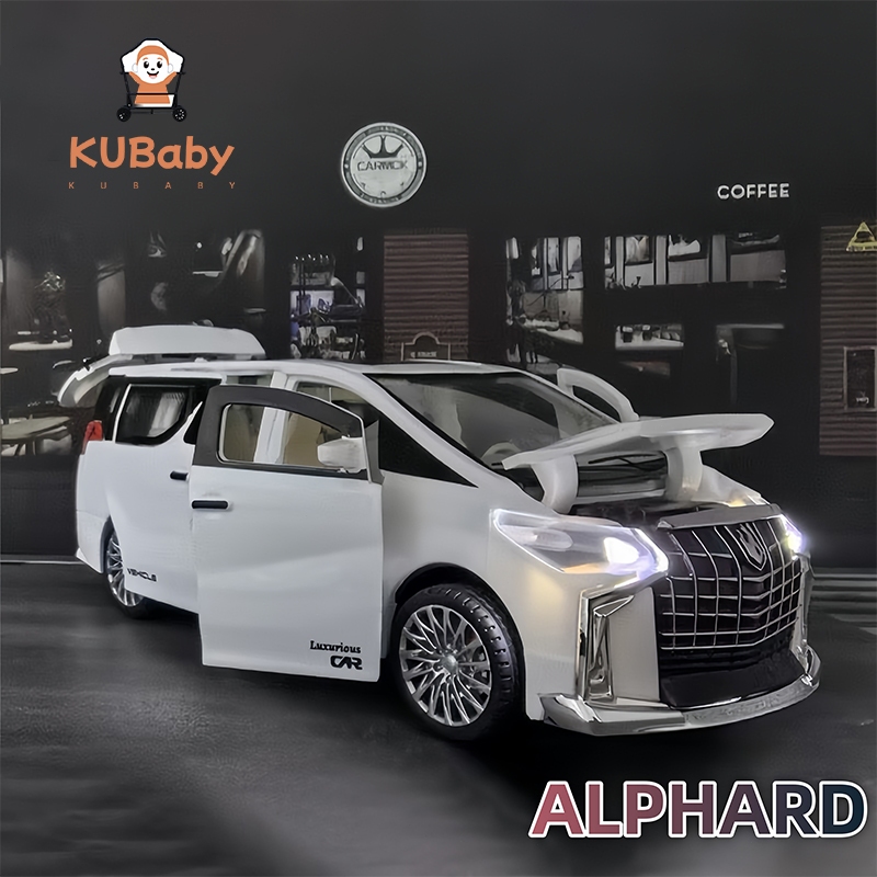 KUBOY Diecast Mobil Toyota Alphard Skala 1:18 Miniatur Mobil Mainan Pajangan Pintu dapat dibuka el mobil realistis kolek