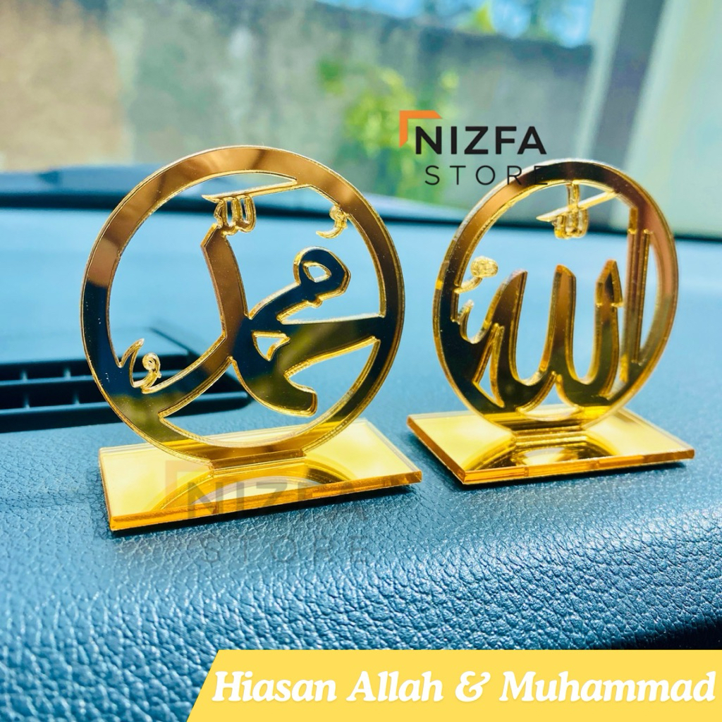 Pajangan Dashboard Mobil Allah & Muhammad, Hiasan Dashboard Mobil Allah Muhammad Warna Bahan Acrilic Tebal