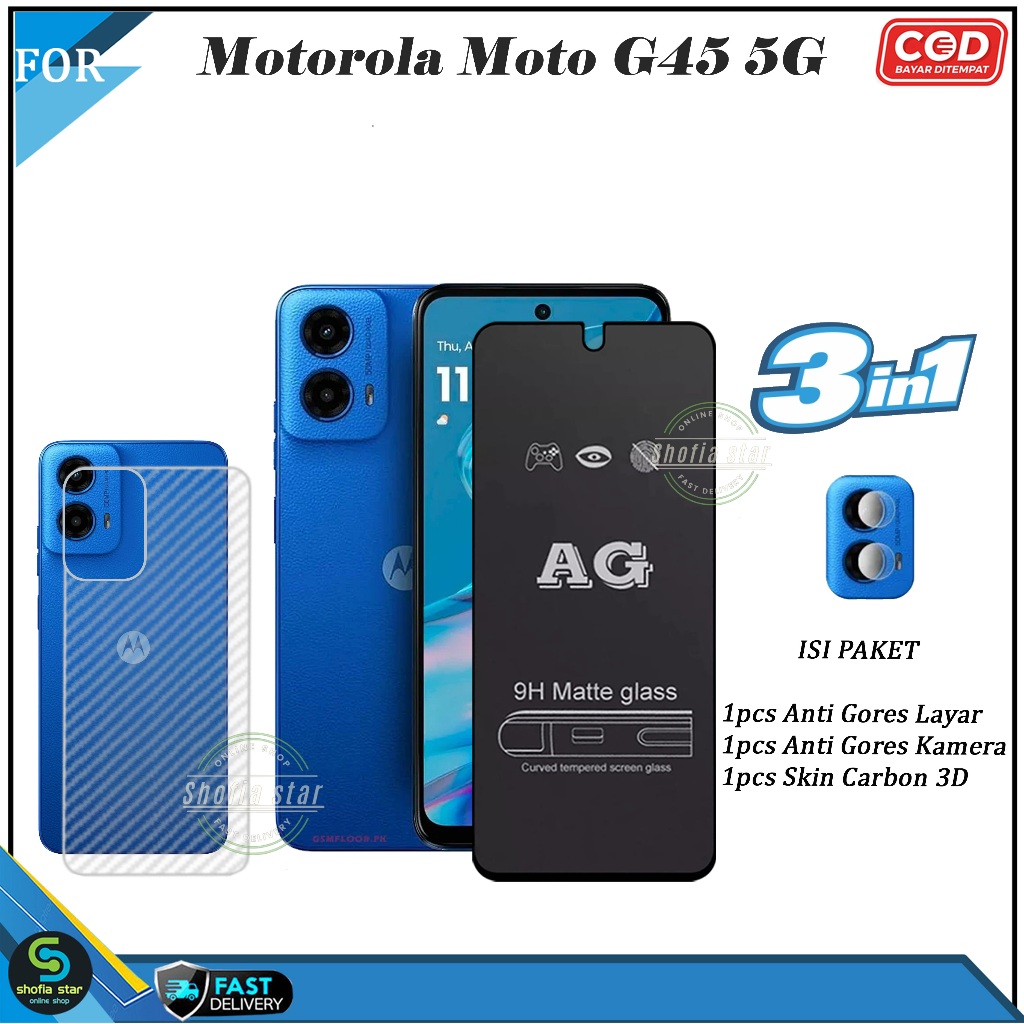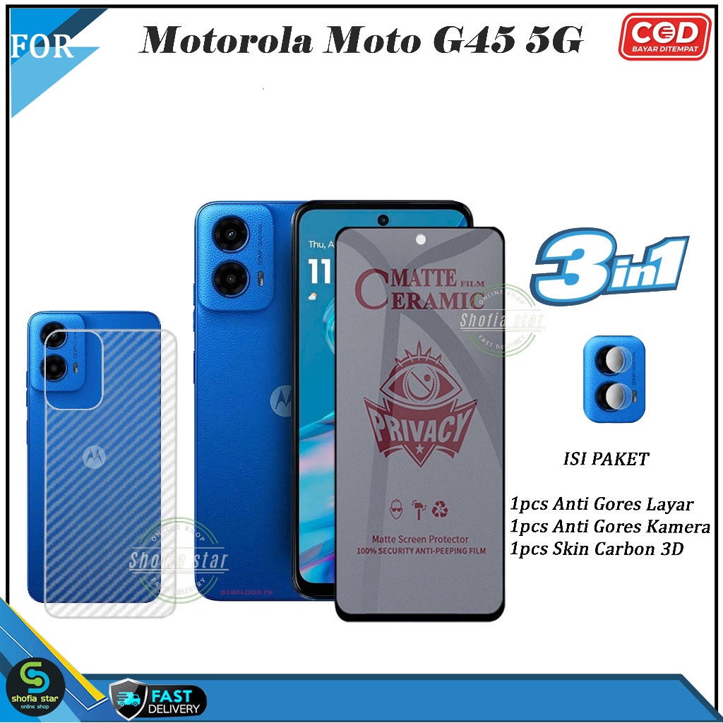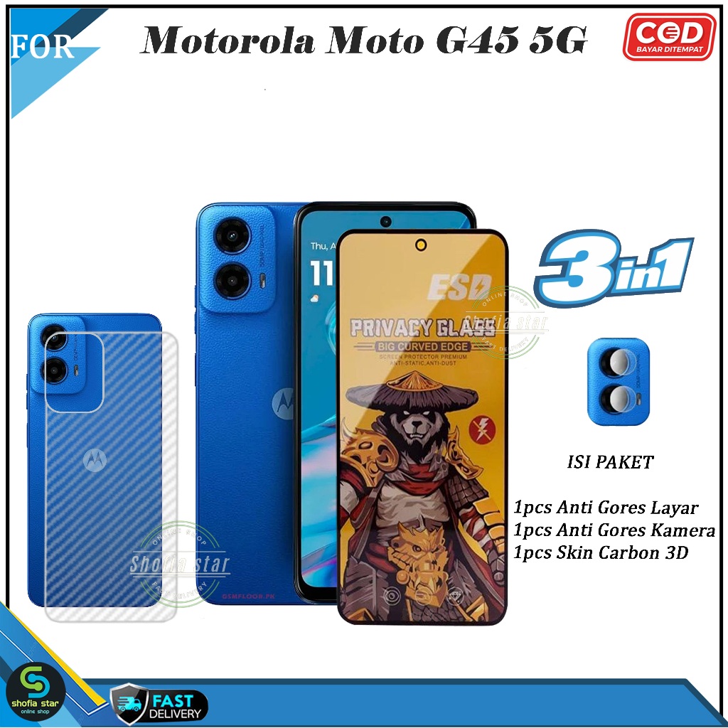 [Mall] Promo 3in1 Tempered Glass Esd Spy Motorola Moto G45 5G G35 5G G34 5G G14 Anti Gores Kaca Full Cover