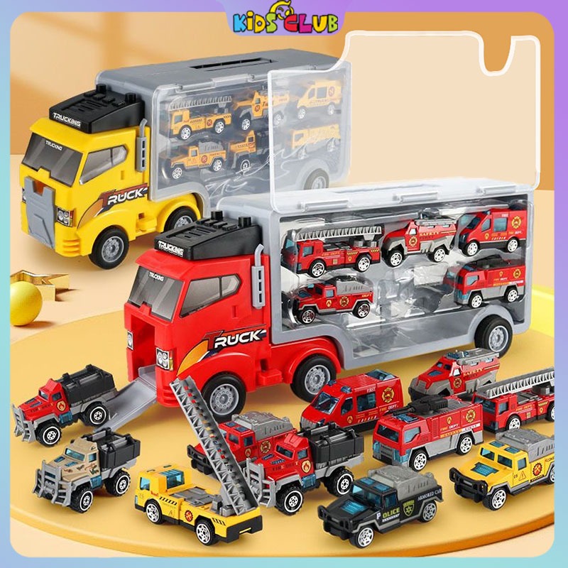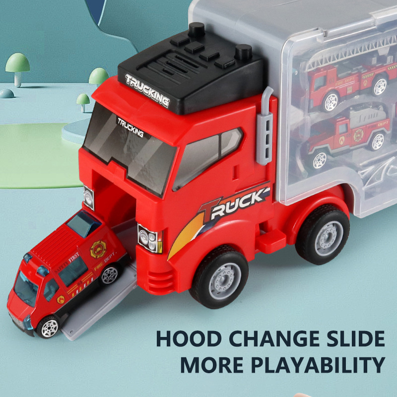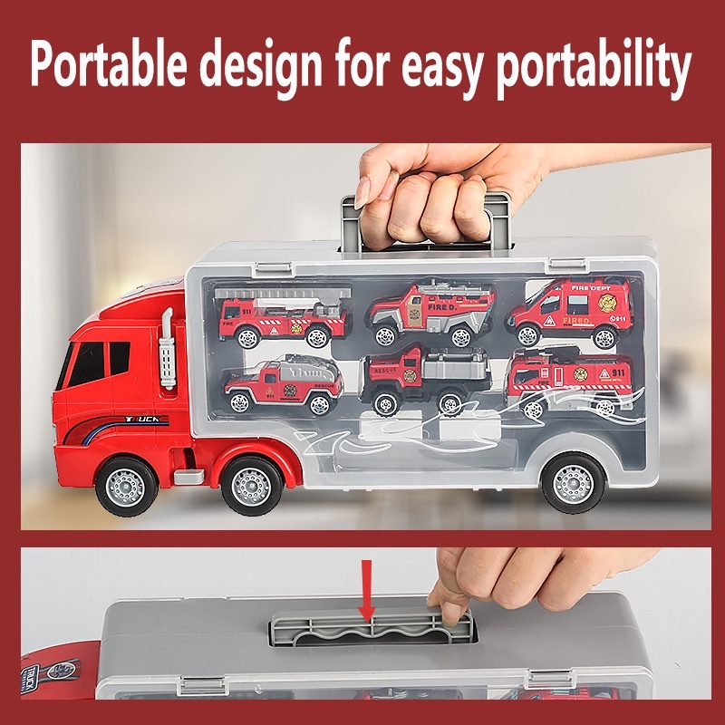 Mainan Truk Anak Truck Fire Vehicle Alloy Catapult Deformation Truck Folding Track Die Cast Pull Back Car Die Cast Car