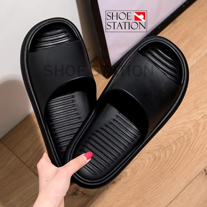 SENDAL SLIPPERS PRIA WANITA KARET EVA PREMIUM RINGAN EMPUK NYAMAN SIZE 36-45 - HITAM, 36-37