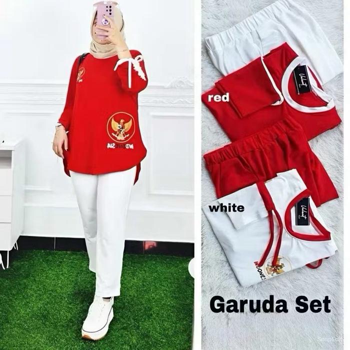 STELAN MERAH PUTIH SPESIAL KEMERDEKAAN INDONESIA/SETELAN 17 AGUSTUS BAJU STELAN - GARUDA SET