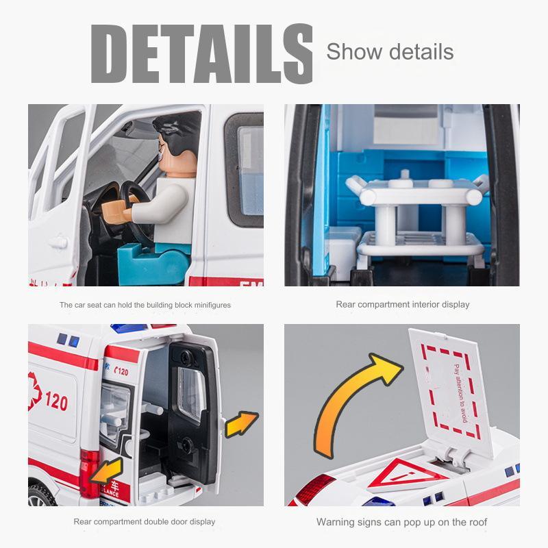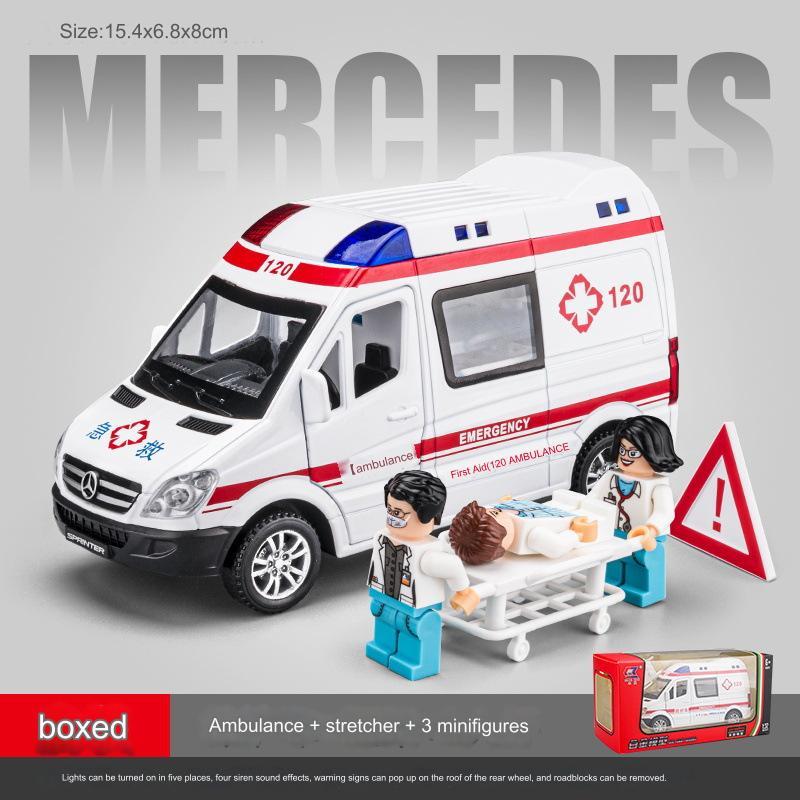 Diecast Mobil Ambulance mercy Sprint dgn 3 figure + tandu scala 1:32 suara lampu pullback (R260)