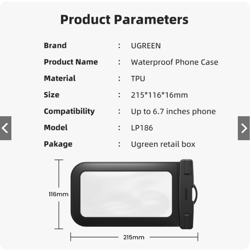 UGREEN Sarung HP Waterproof Multifungsi Kantong HP Anti Air Max 6.7 inch Untuk Iphone 11 12 13 14 Pro Max Samsung S23