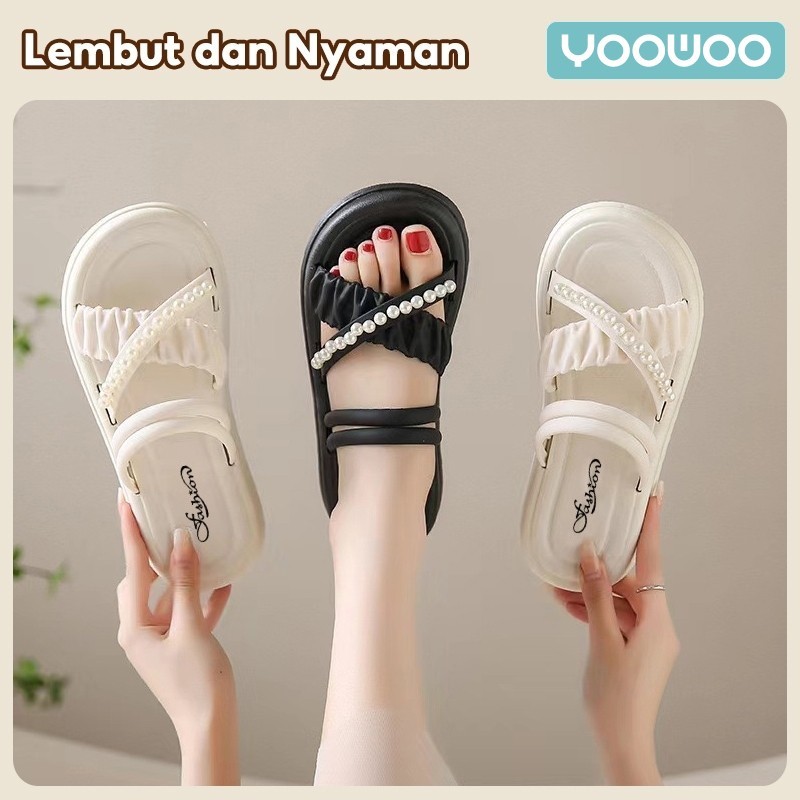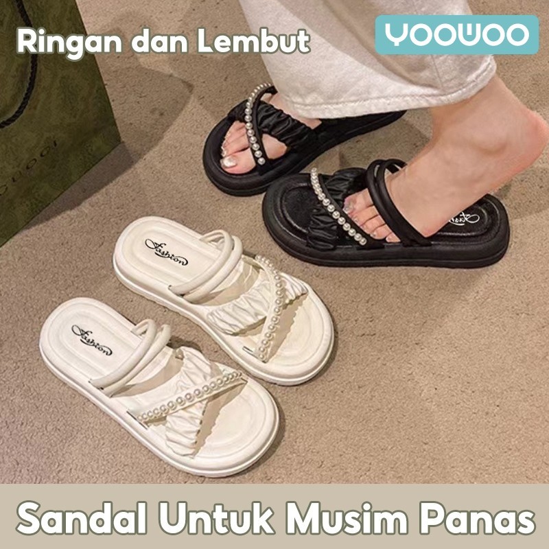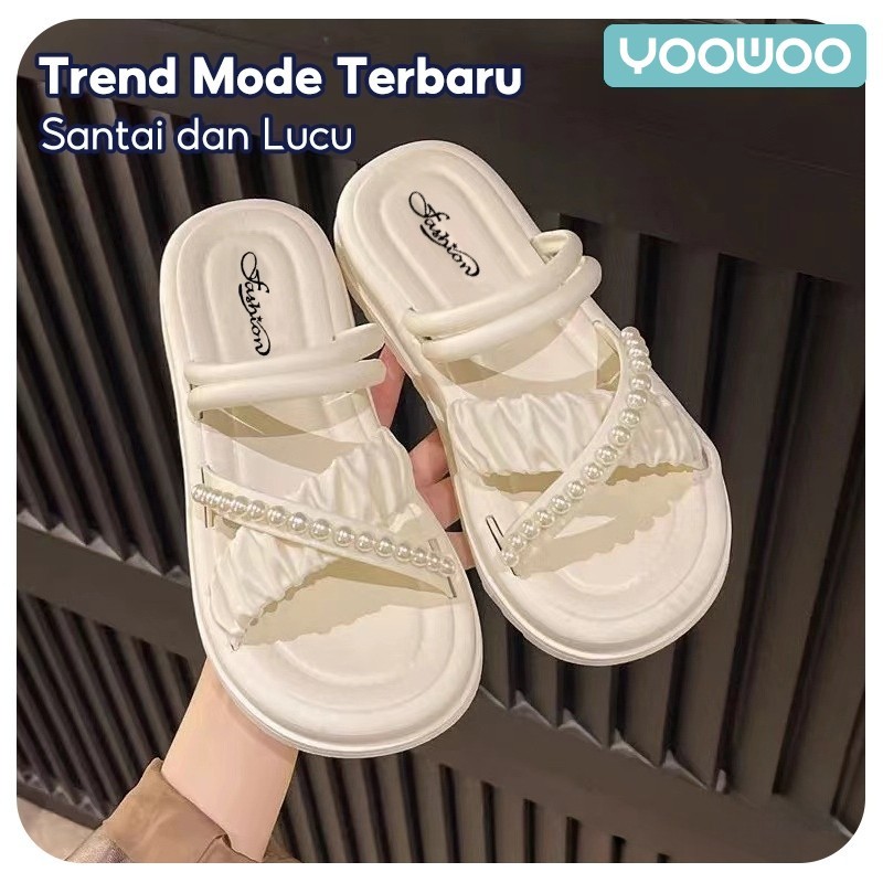 YooWoo Sandal Bersol Platform Untuk Wanita Modis Sandal Rumah Bersol Tebal Serbaguna Sandal Anti Selip Gaya Korea