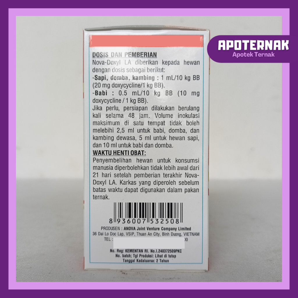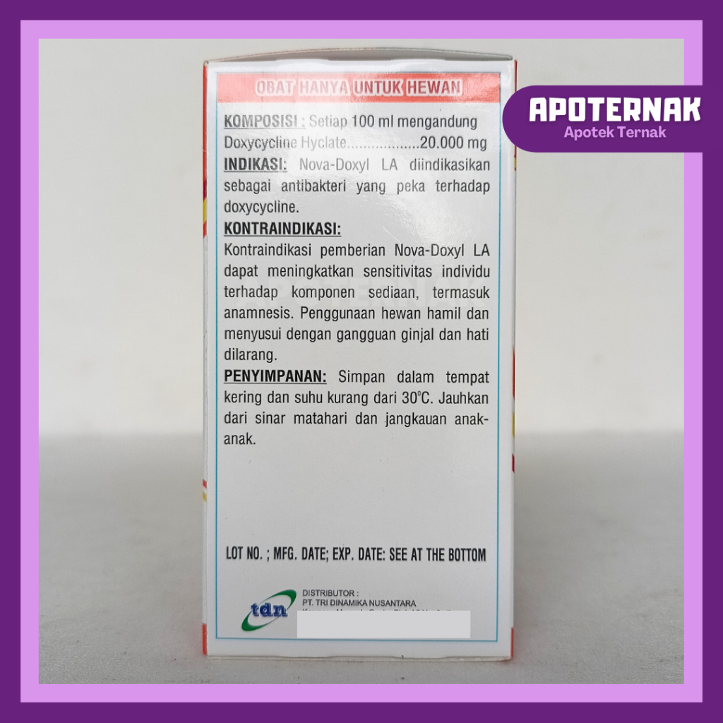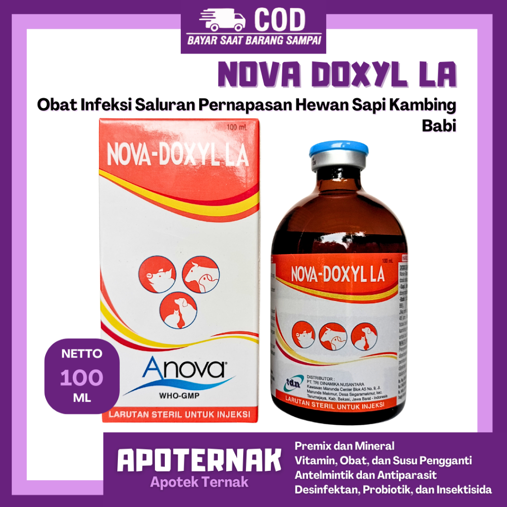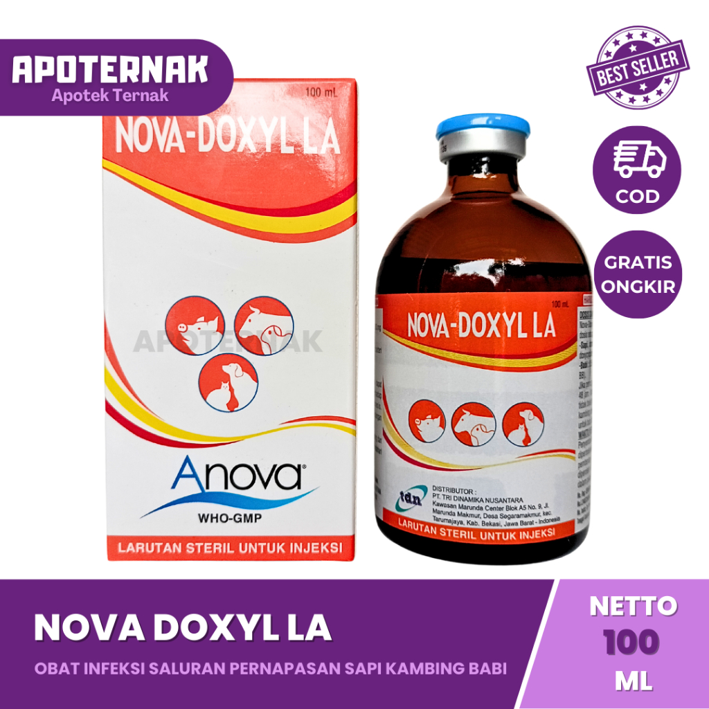 NOVA DOXYL LA 100 ml - Mengatasi Infeksi Saluran Pernapasan Hewan Sapi Kambing Babi - NOVA DOXY