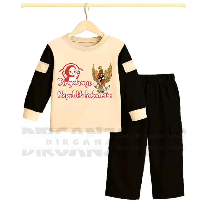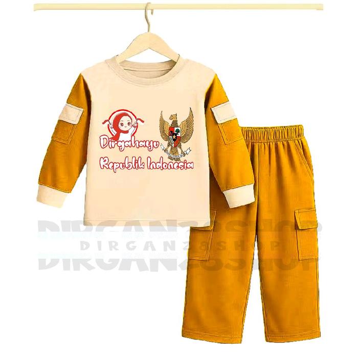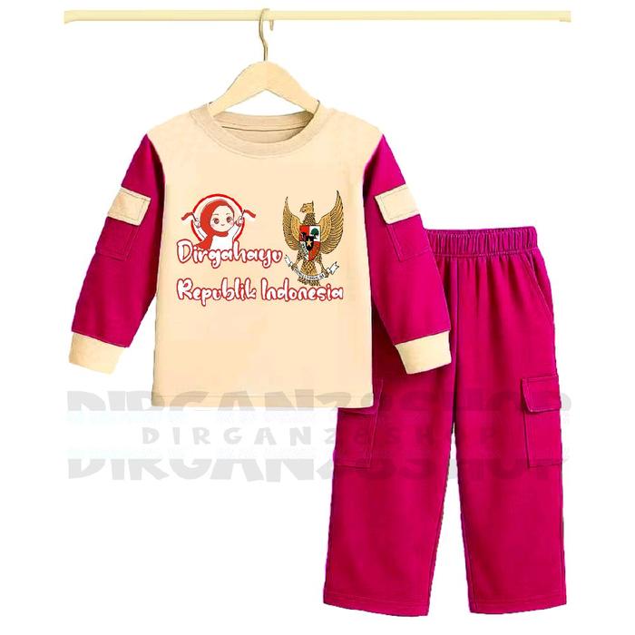 SETELAN ANAK PEREMPUAN KEMERDEKAAN CARGO SATU SET USIA 3-8 TAHUN - FASHION BAJU PAKAIAN - MERAH, 3 TAHUN+