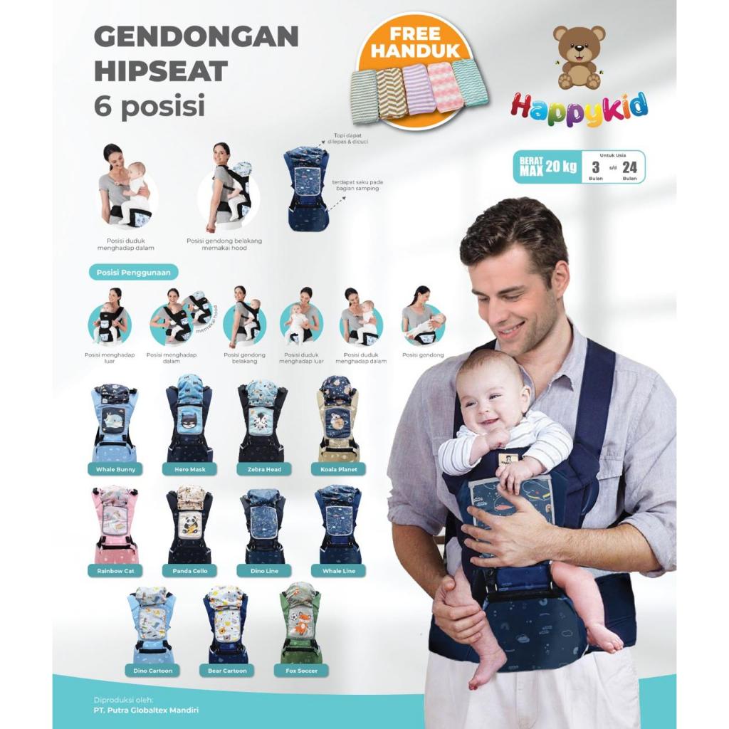Gendongan Bayi 6 Posisi Hipseat HappyKid Free Handuk