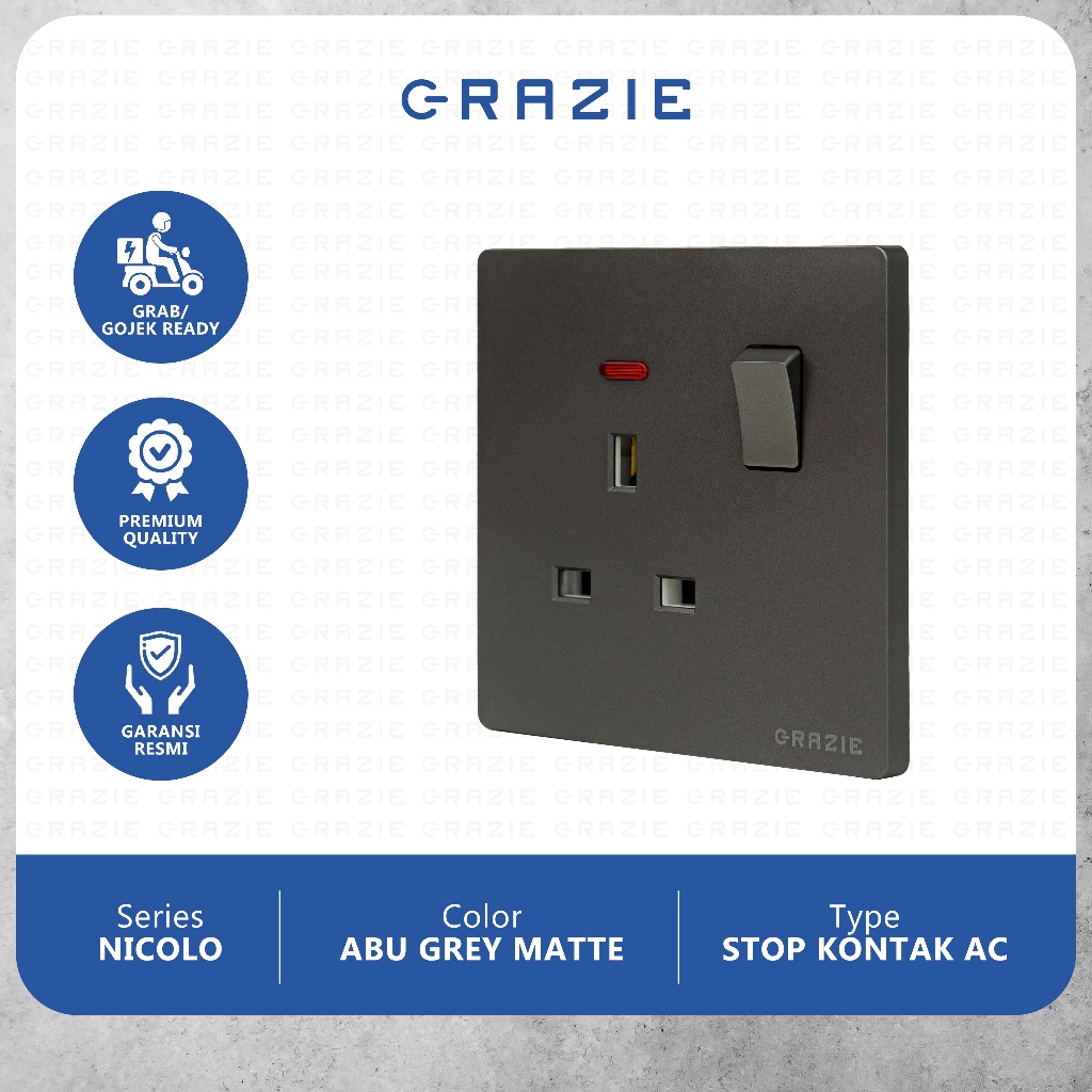 Grazie 2 Way Nicolo Grey Abu GNA /Stop Kontak/ Sakelar Saklar Rumah Grazie Nicolo Gabungan 2 Jalur