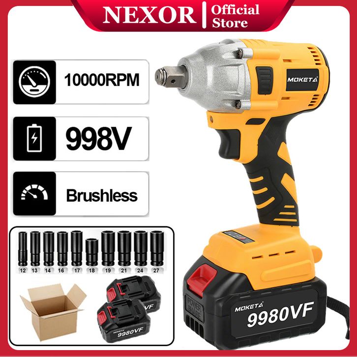 Mesin Impact NEXOR brushless impact wrench 10000n.Mcordless mesin impact KIT 20000mAh baterai Ditingkatkan