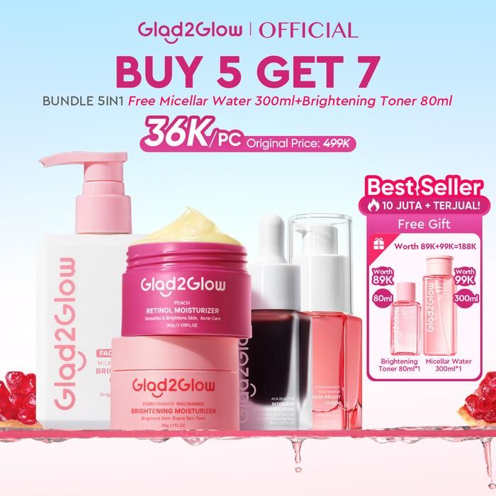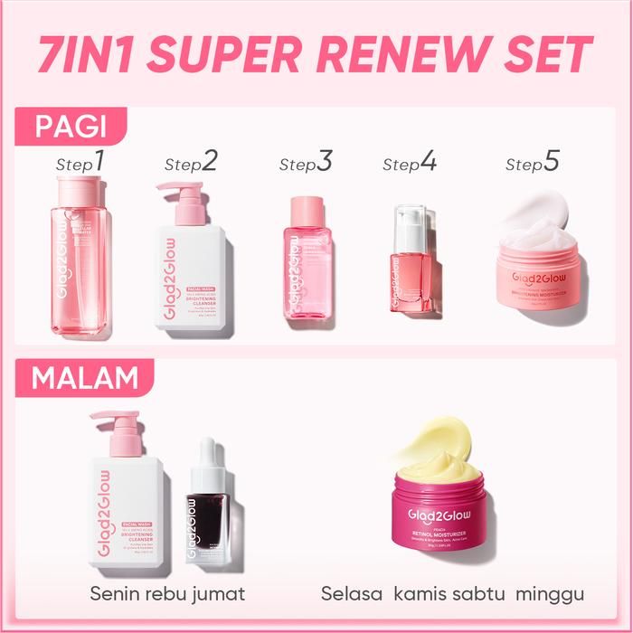 【Buy 5 Get 7】Glad2Glow Renew bundle 7in1 -Brightening Moisturizer+Toner+Milk Cleanser+Brightening Serum+Peeling Serum+R