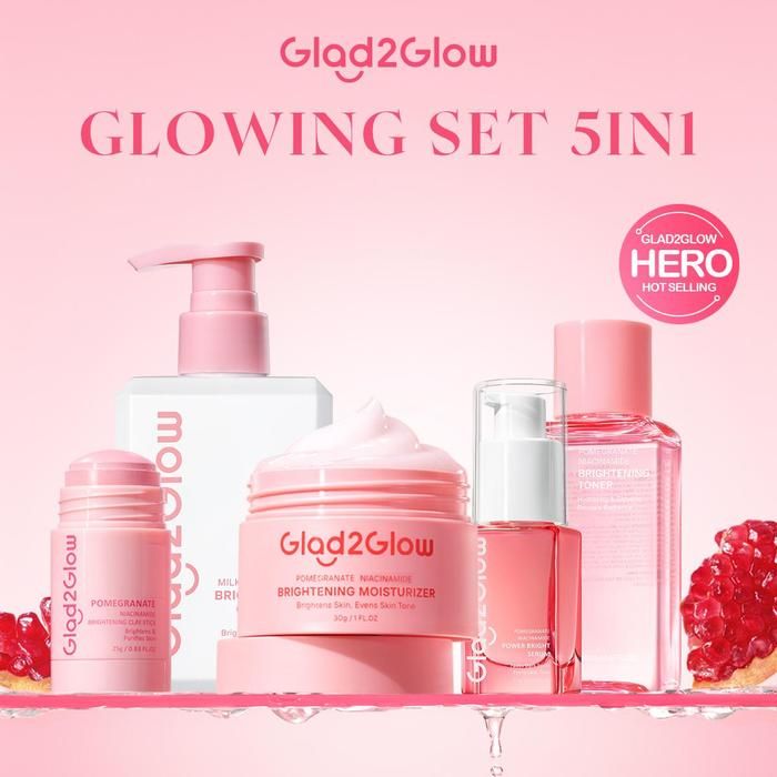 New Glad2Glow Glowing bundle all in 1 - 2/3/4/5 PCS Skincare Paket-Brightening toner+Brightening Moisturizer+Cleanser+B