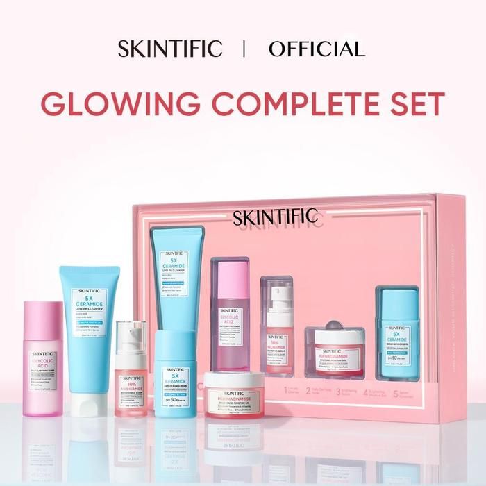 SKINTIFIC MSH Niacinamide Glowing Complete Set Skincare 5pcs Cleanser Facial Wash+Toner+Serum+Moisturizer+Sunscreen - g