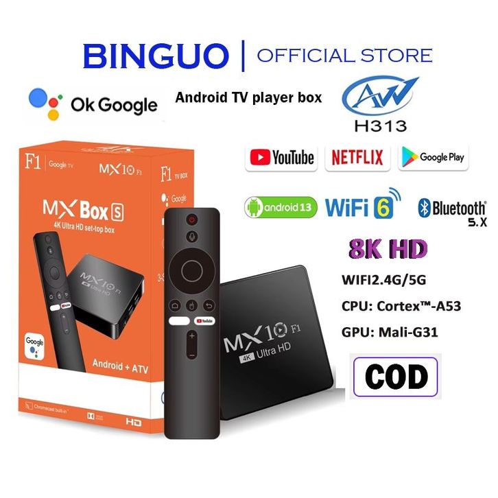 MX10 F1 Android Tv Box Android 13.0 OS Ram 2GB Rom 16GB WiFi 5G/2.4G Bluetooth Smart Tv Box Bluetooth Voice Control 8