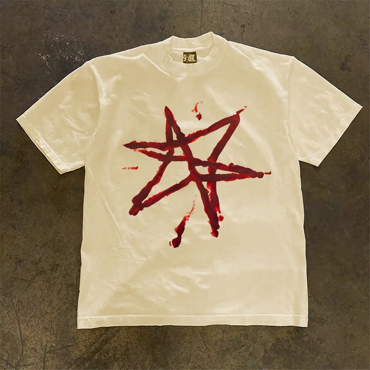 JJ.STORE Bahasa inggris Percikan cat Coretan pencetakan Amerika kecenderungan baju atasan wanita terbaru kekinian kaos