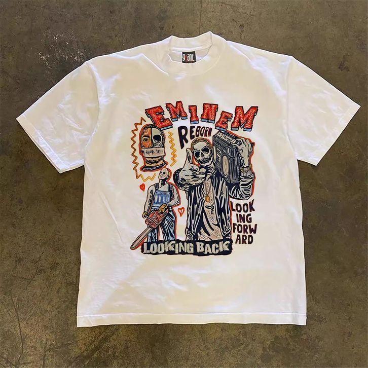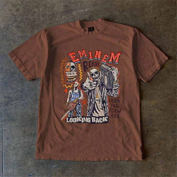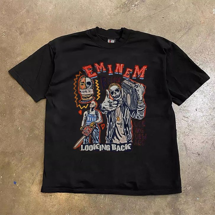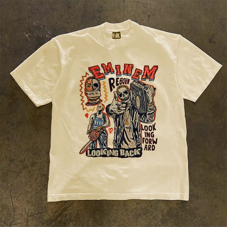 JJ.STORE Tengkorak pola pencetakan Amerika Musik Hip Hop Retro baju atasan wanita terbaru kekinian kaos pria oversize s