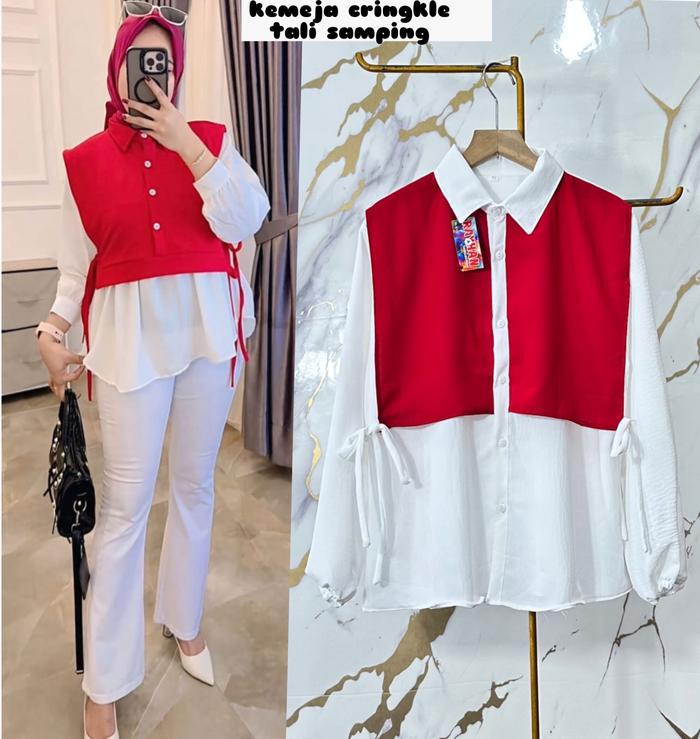KEMEJA MERAH PUTIH KEMERDEKAAN RI 17 AGUSTUSAN WANITA MODEL ROMPI - ATASAN WANITA HARI KEMERDEKAAN DIRGAHAYU RI - KODE 0