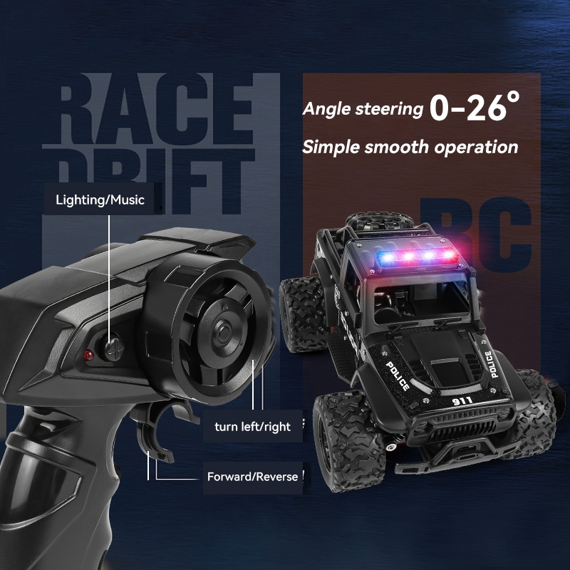 HELIK Mobil Polisi Bunyi Dan Nyala 2.4GHZ Mobil Off road Remote Control Mainan Anak Laki Laki
