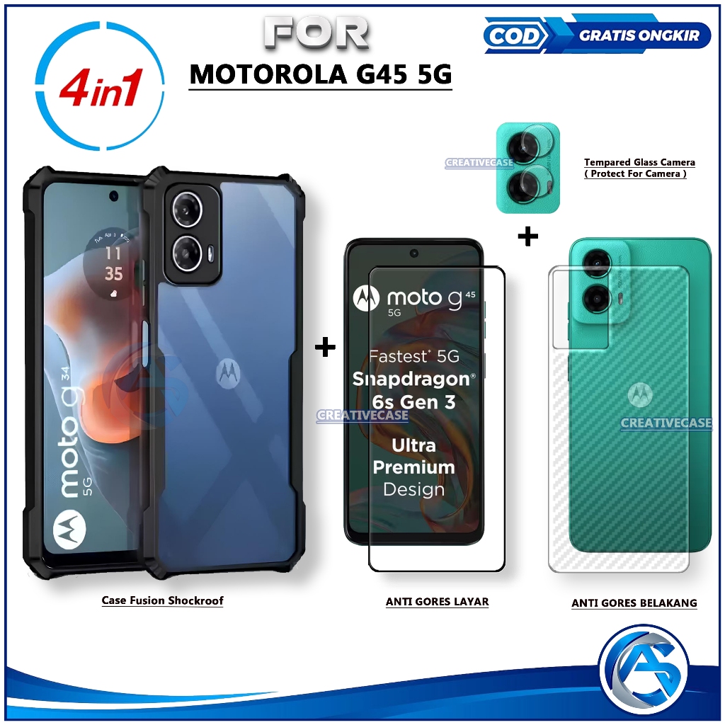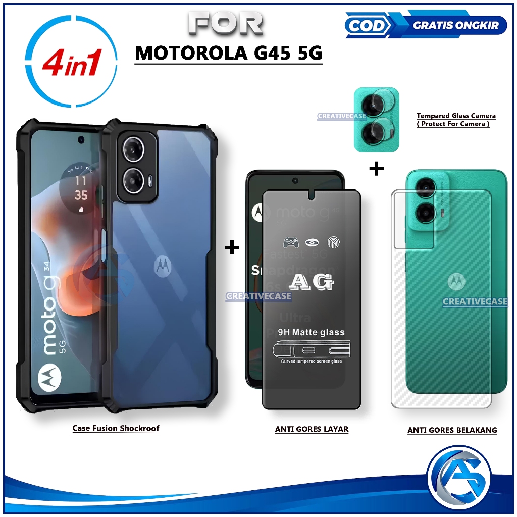 [Mall] Casing Paket 4in1 Motorola G45 Moto G34 Softcase Fusion Armor Shockproof Transparent Black Bumper Case Tempered C