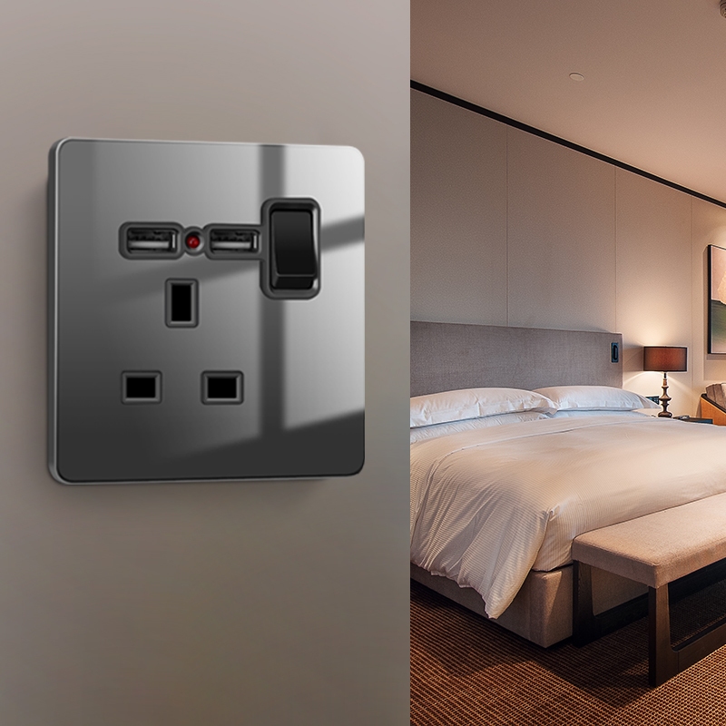 【Bahan tempered glass】Soket Saklar Lampu/Sakelar Hitam Premium/Saklar Lampu Pengisi Daya USB/Saklar Dinding/Kaca Tempered Hitam 1/2/3 Gang 1 Arah