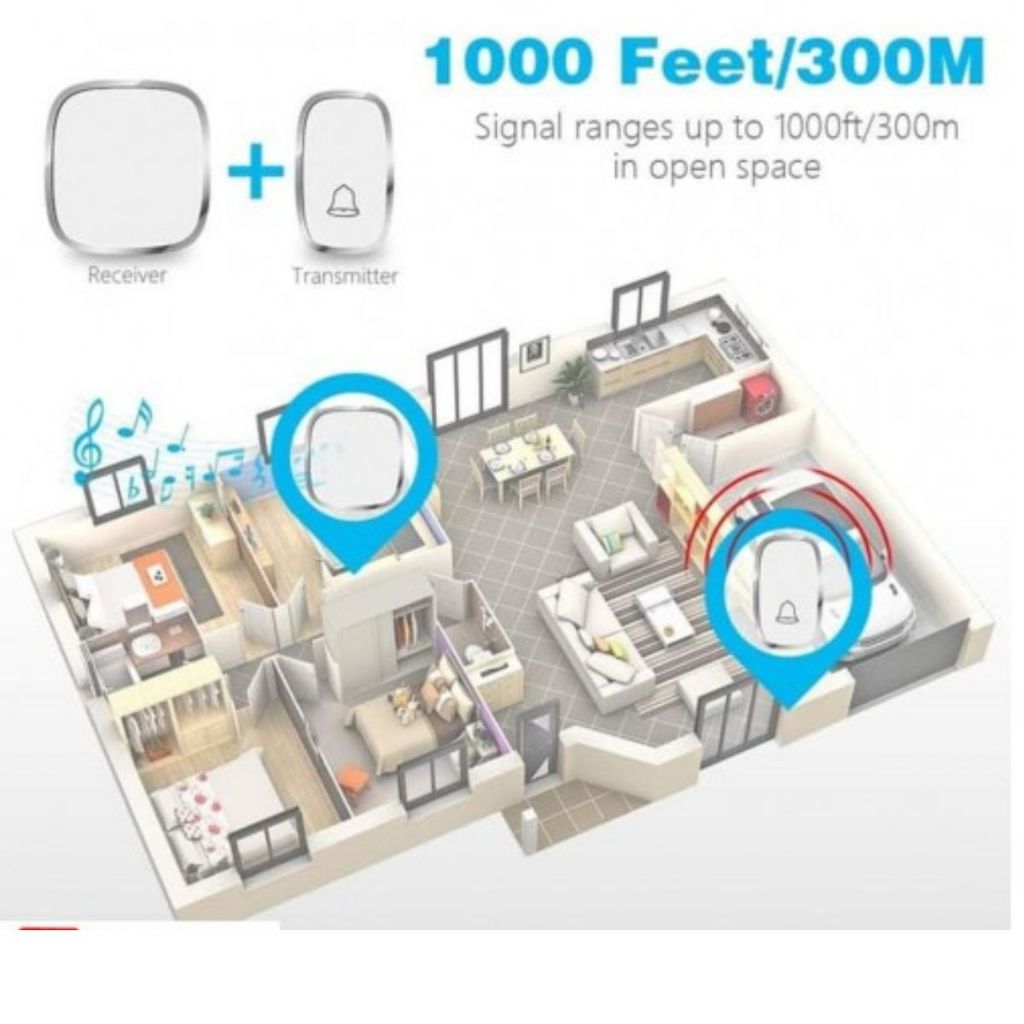 BEL-002 Wireless Doorbell Waterproof Door Bell House LED Light 36 Nada / Ringtones Bel Pintu Rumah
