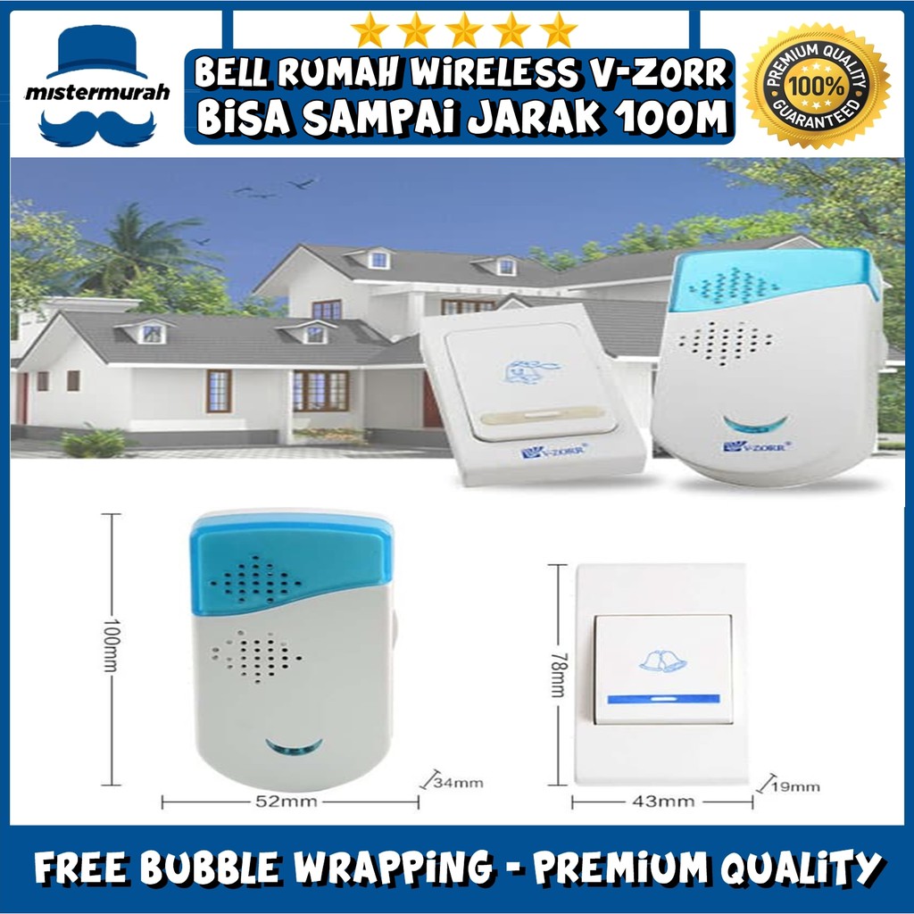 V-Zorr Bel Pintu Rumah Bel Tanpa Kabel Wireless Door Bell Remote 30M (BONUS Batre 12V 1 BUAH)