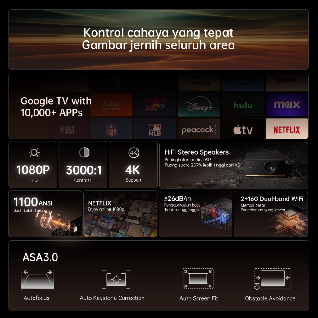 [Mall] Wanbo X5 Pro Proyektor Google TV FHD 1080P 2x5W HiFi Stereo Speakers 1100 ANSI Lumens Smart Projector